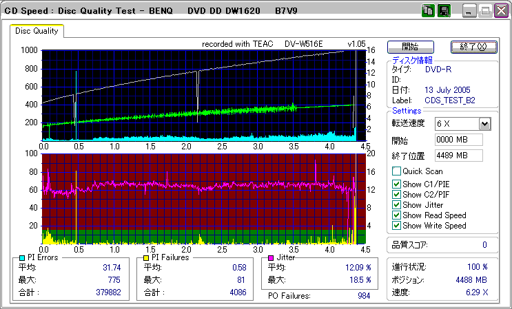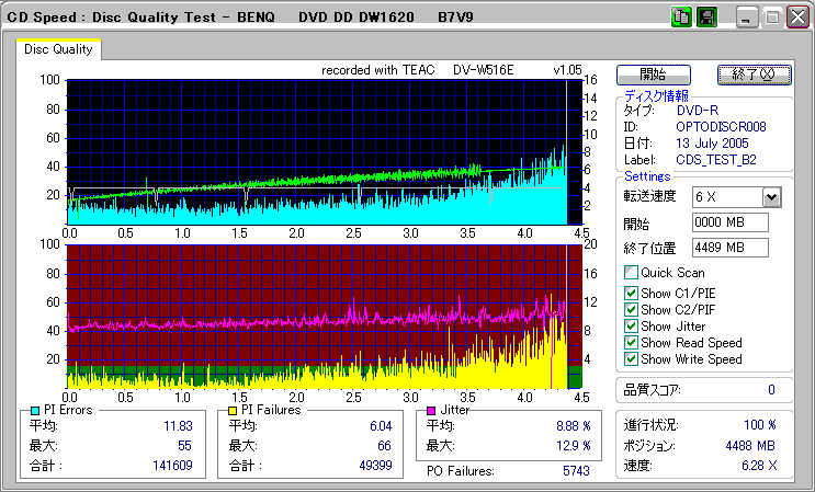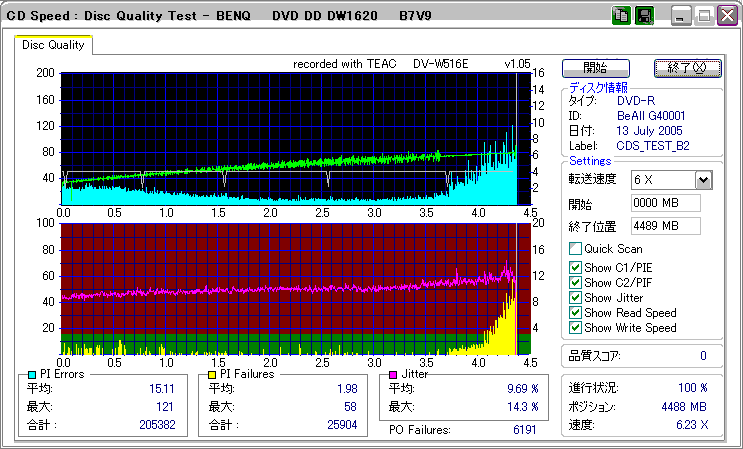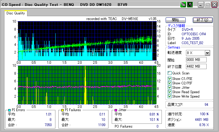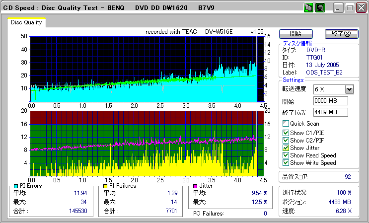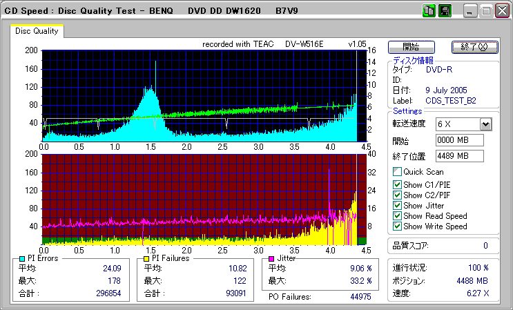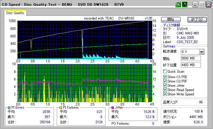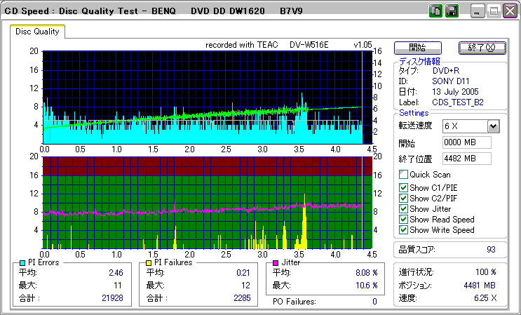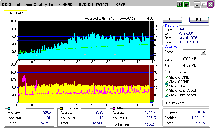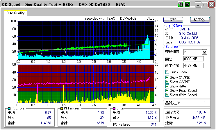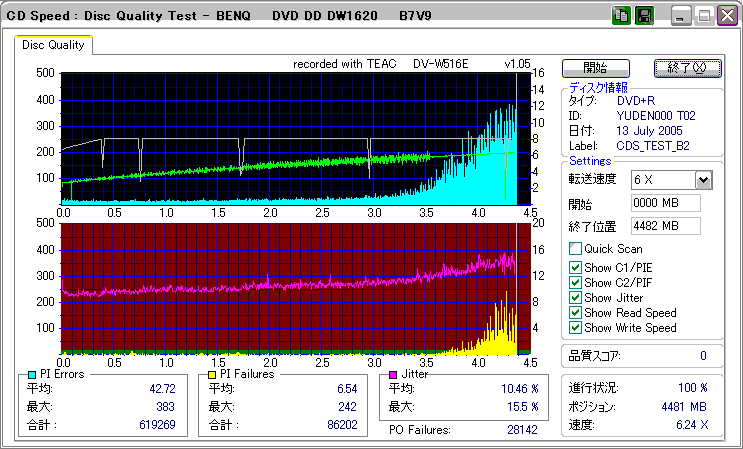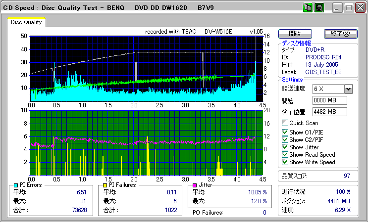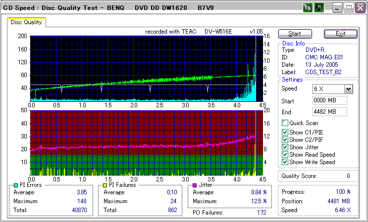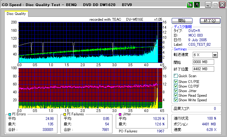 CDSpeed "CD Quality test" with BenQ DW1620R_(6x CAV) |