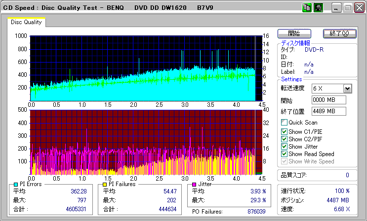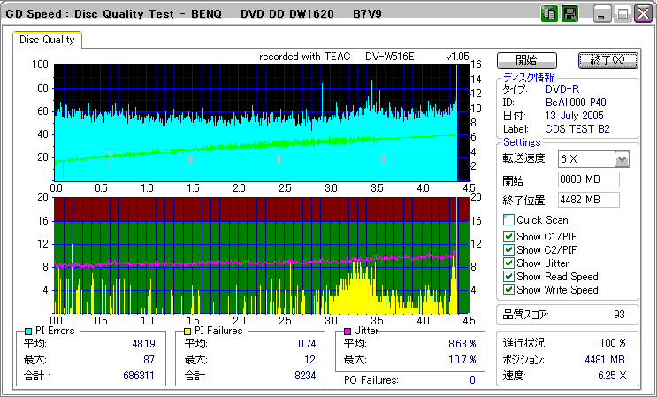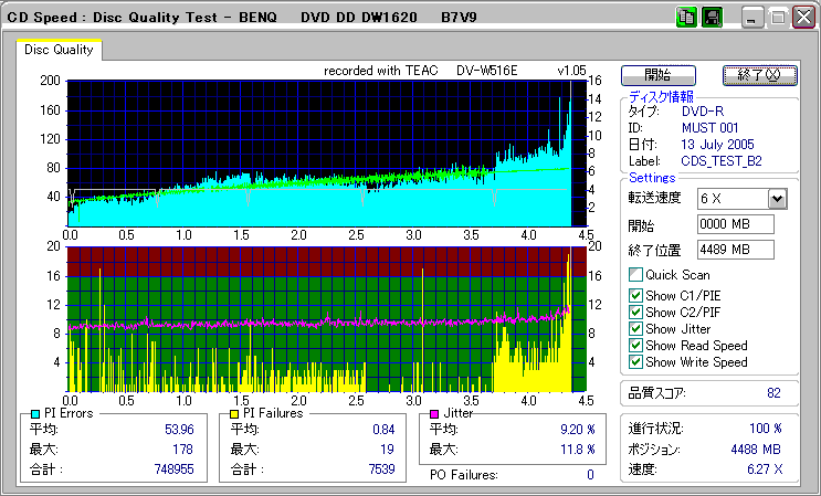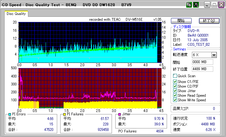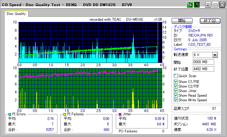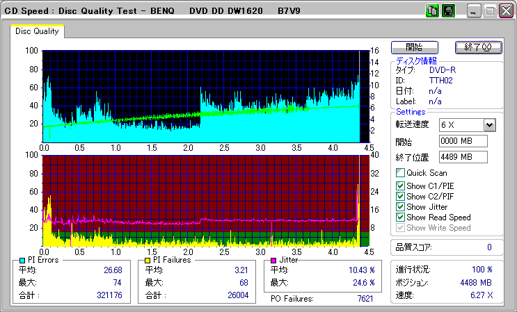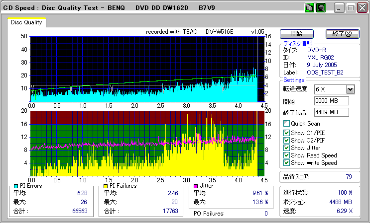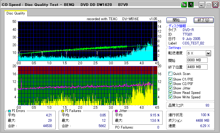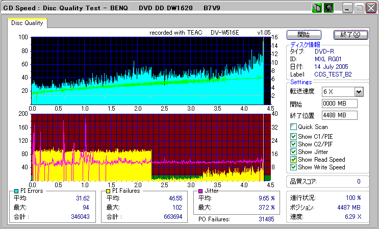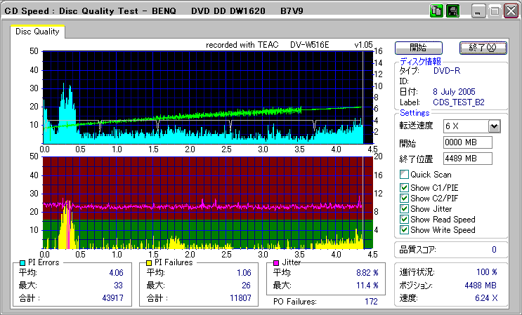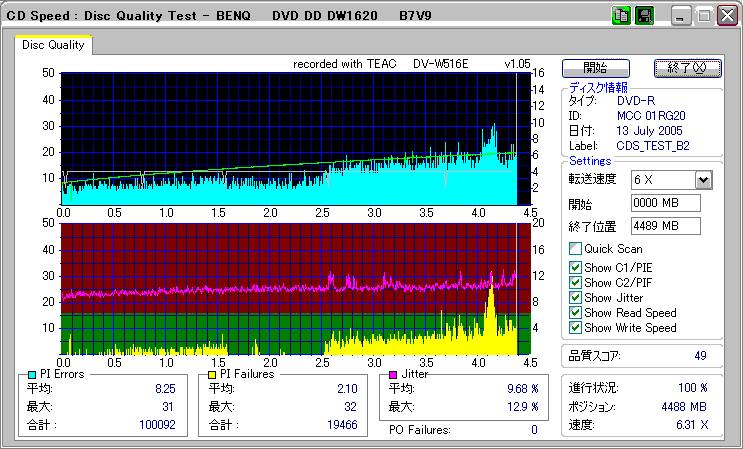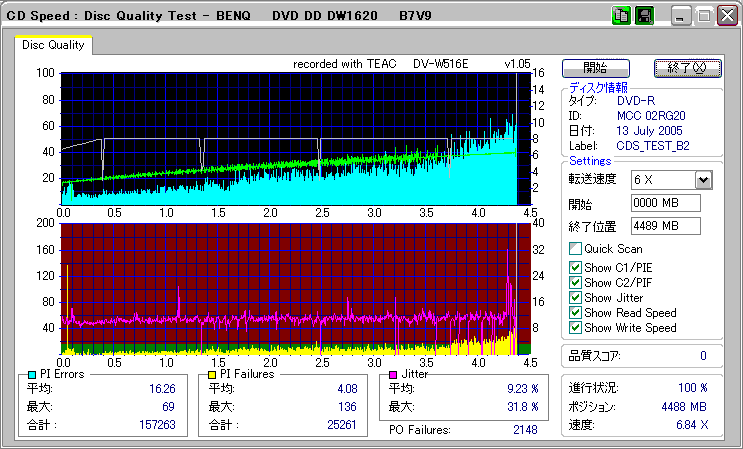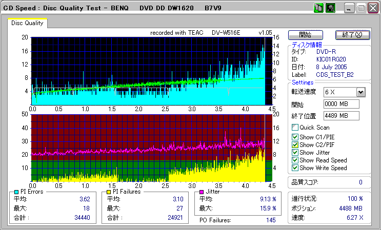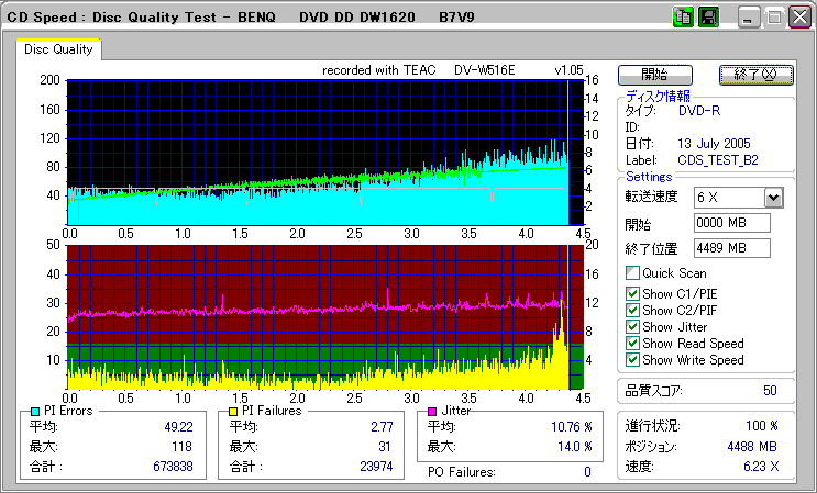 CDSpeed "CD Quality test" with BenQ DW1620R_(6x CAV) |
