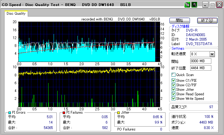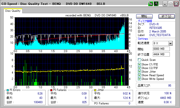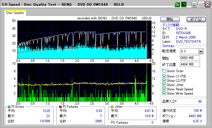 OverSpeed有効 選択した速度:最高速 実際の速度:8x 同じRiTEKでもAll-waysブランドのものは速度は8倍で停止。 外周の方もJitter高めです。 |