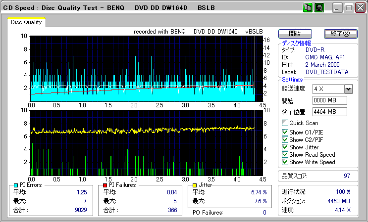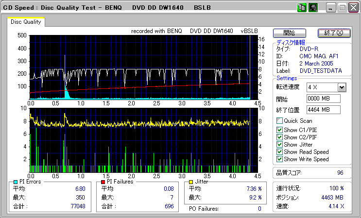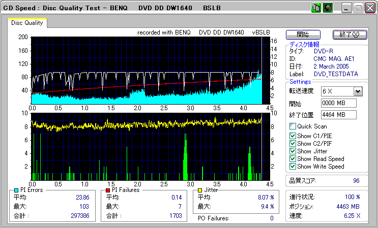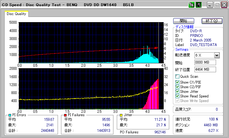 OverSpeed有効 選択した速度:最高速 実際の速度:4x 結局4倍焼きになってしまい、 しかも外周はまともに再生すらできなかった。 |