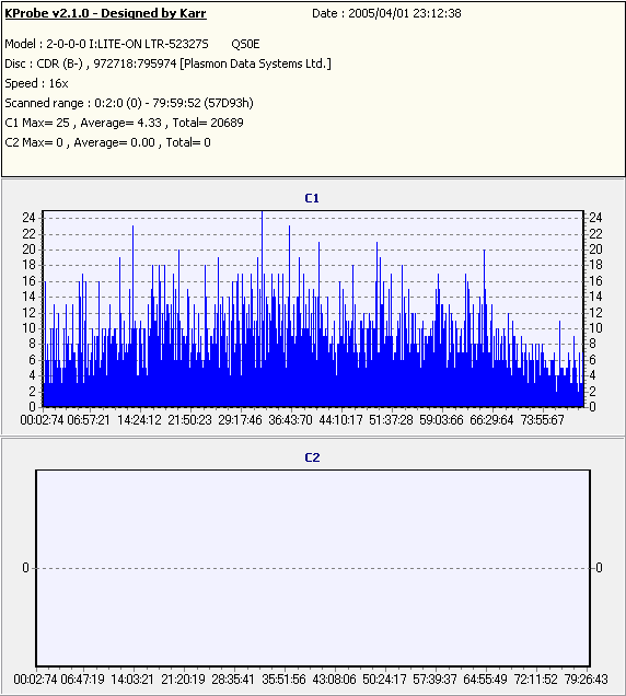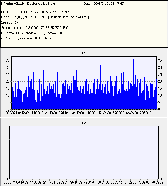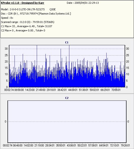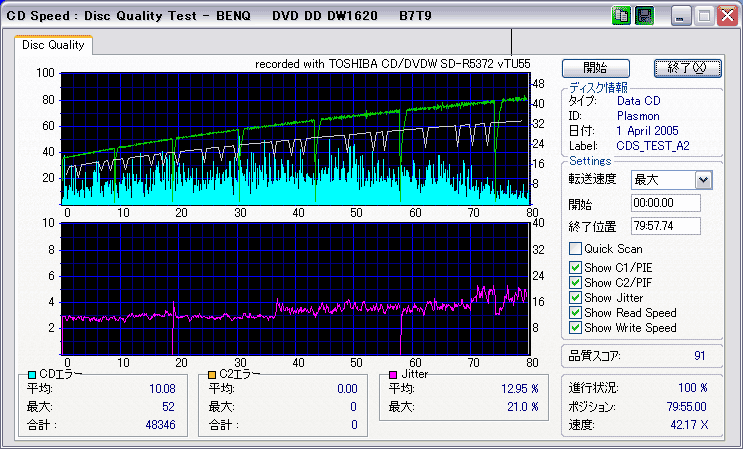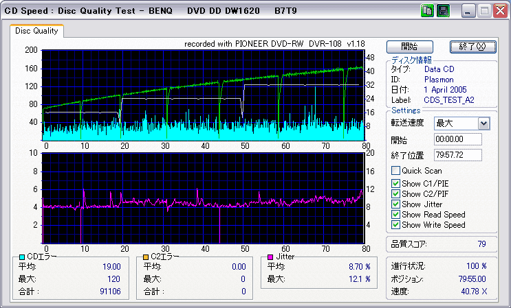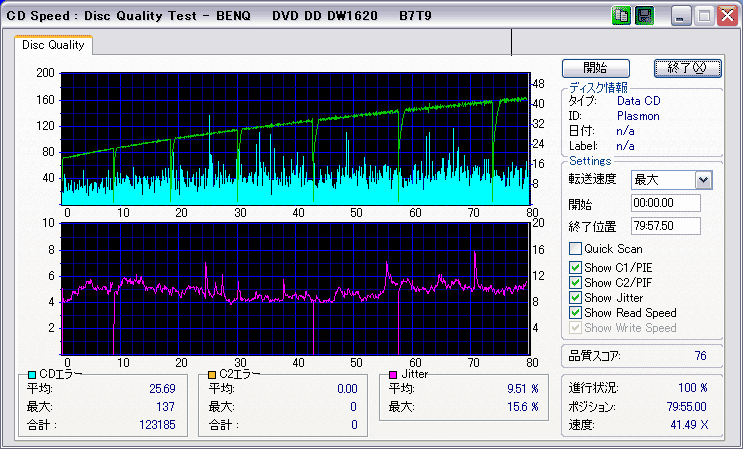 C1エラーはやや多めだが、C2エラーは発生しておらず、またJitter値もかなり低い。