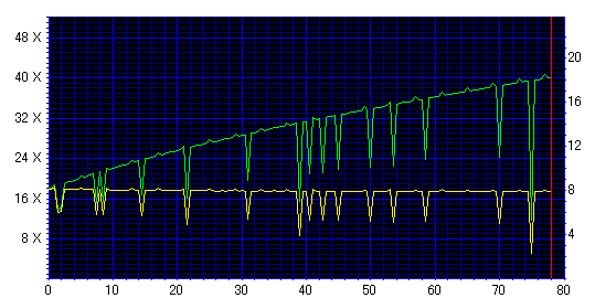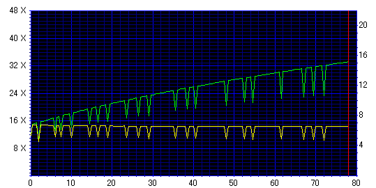 後半で大減速。Jitterもかなりうねっており、C2エラーも発生している。C1エラーも高め。