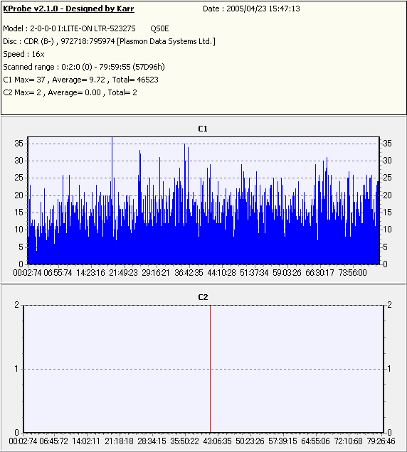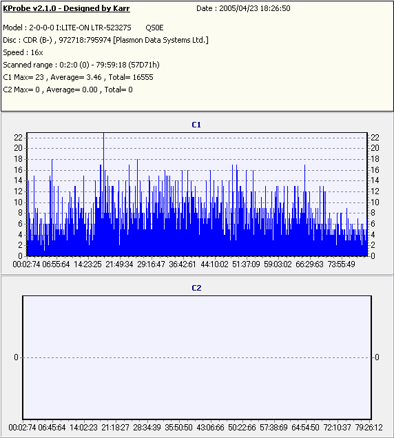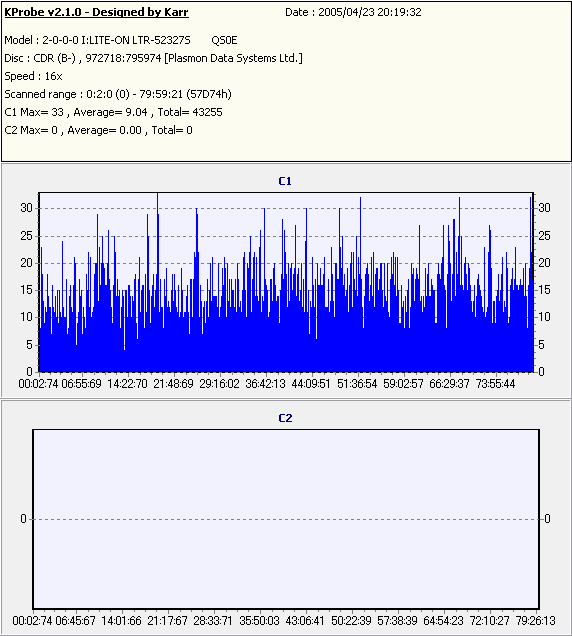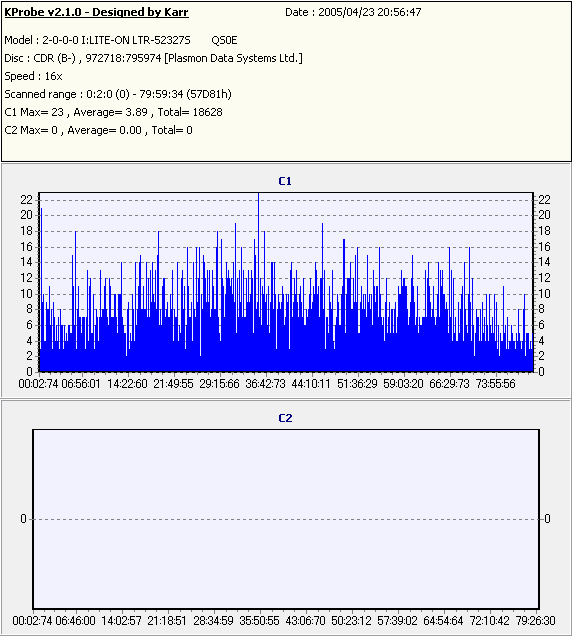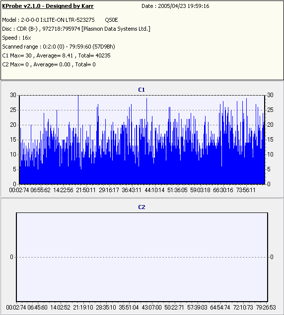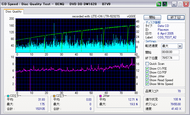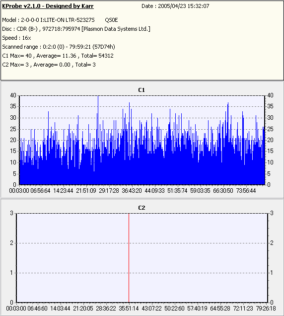 Jitterは低く、C2エラーも他のドライブと比べて少なめなのだが、やはりC1エラーが多い。 |
