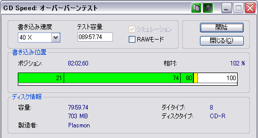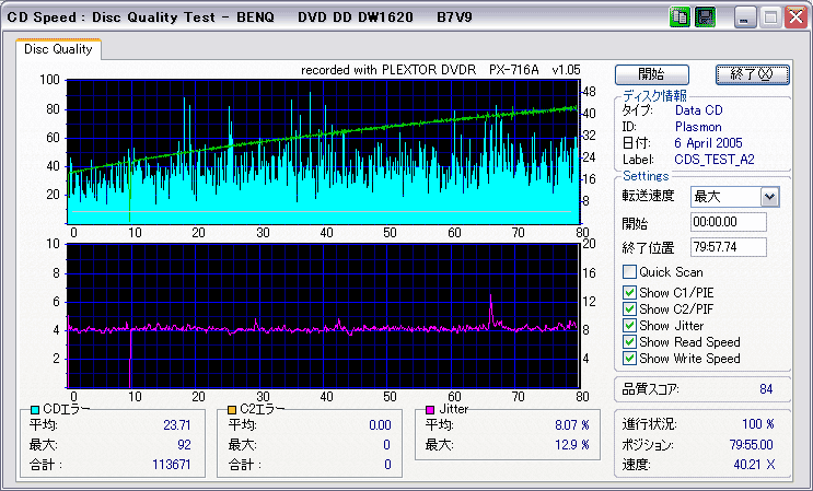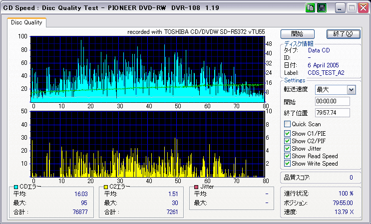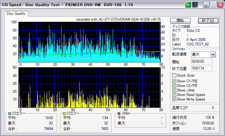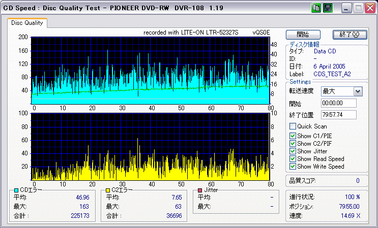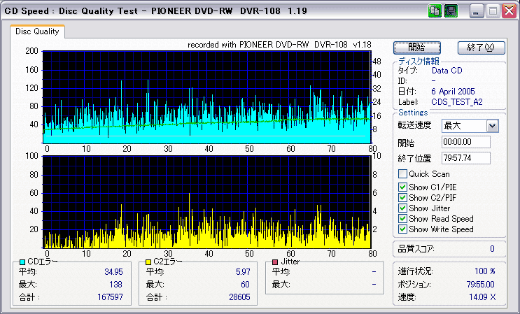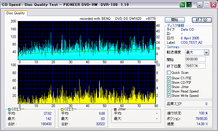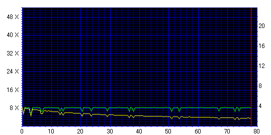 CUが発生しており、なんとも微妙。Jitterも高い。低速で焼けばいいってもんでもないらしい。 |