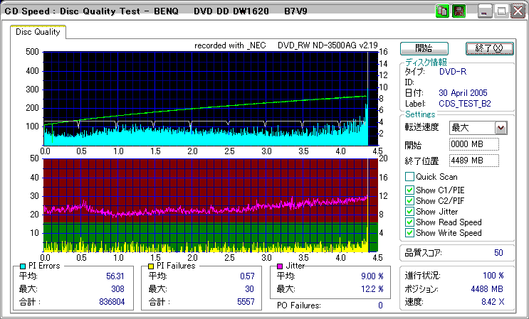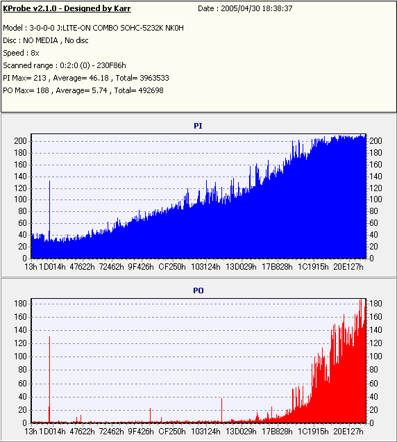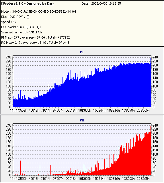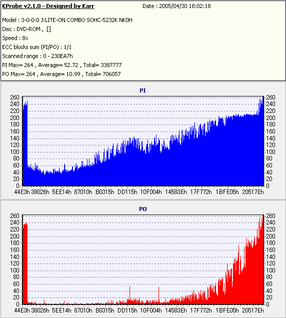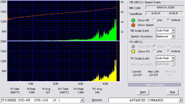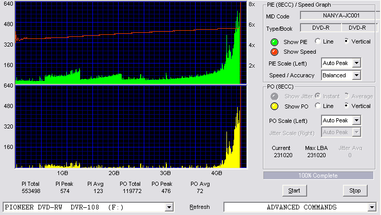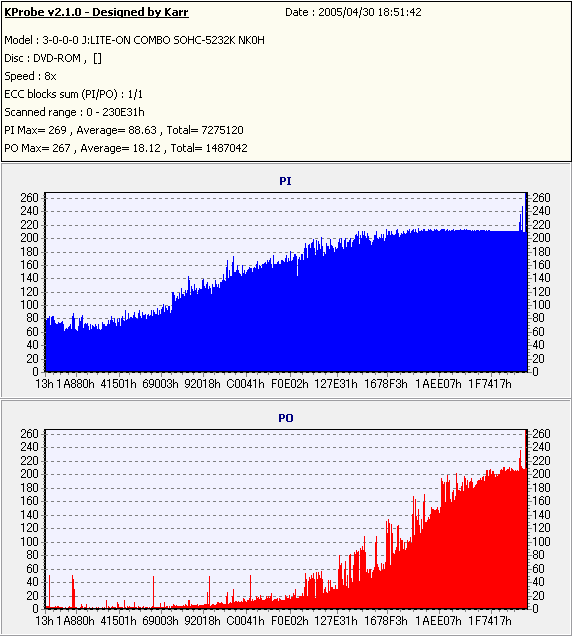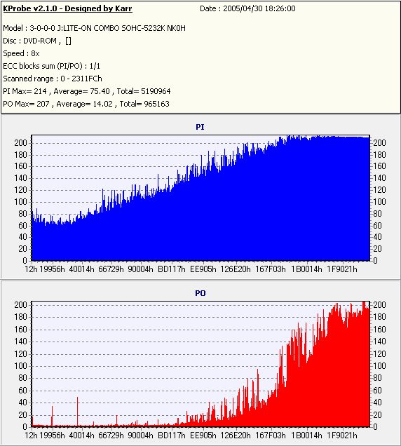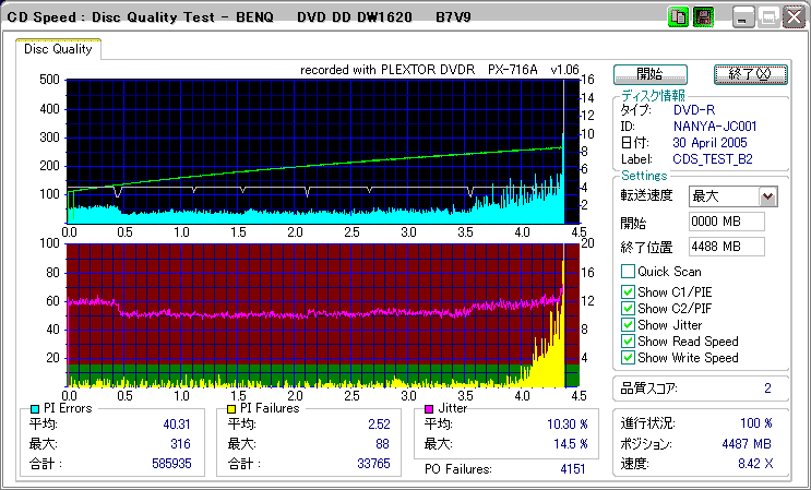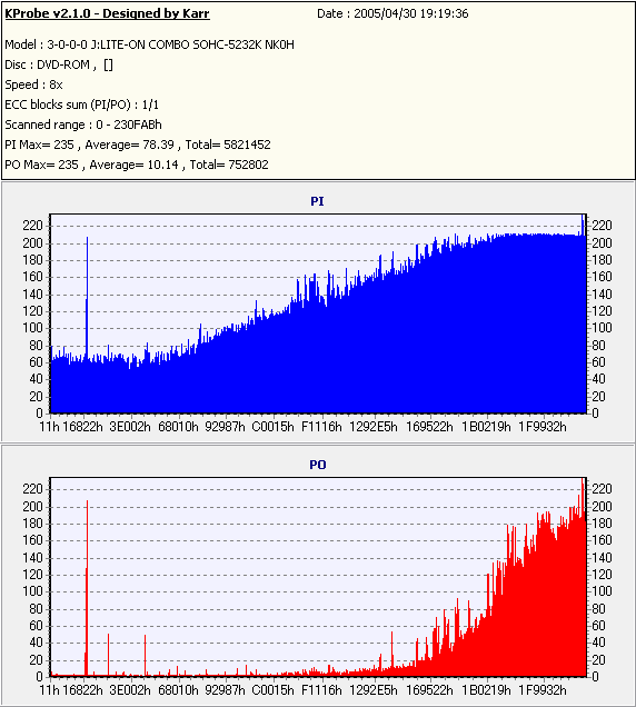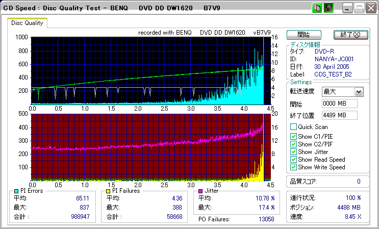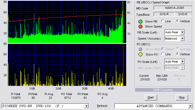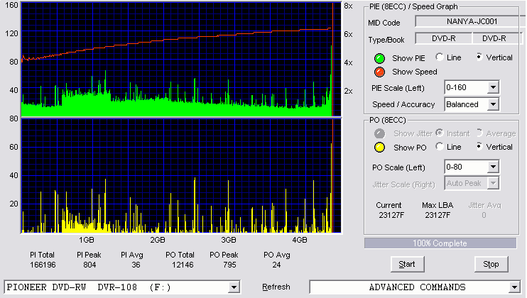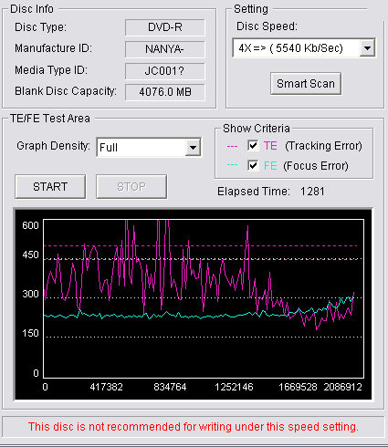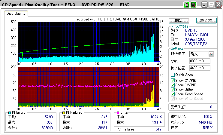 焼いてみた結果はちょっとよろしくない。DVR-108やDW1620Rあたりなら無理をすれば何とか使えるか…といった程度。外周は救いようがない位完全に死んでいる。