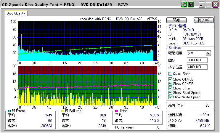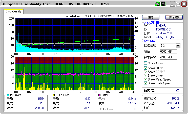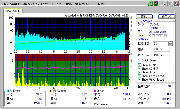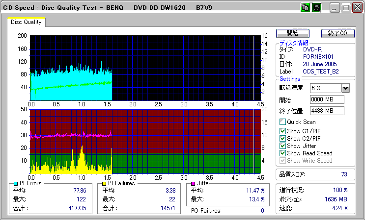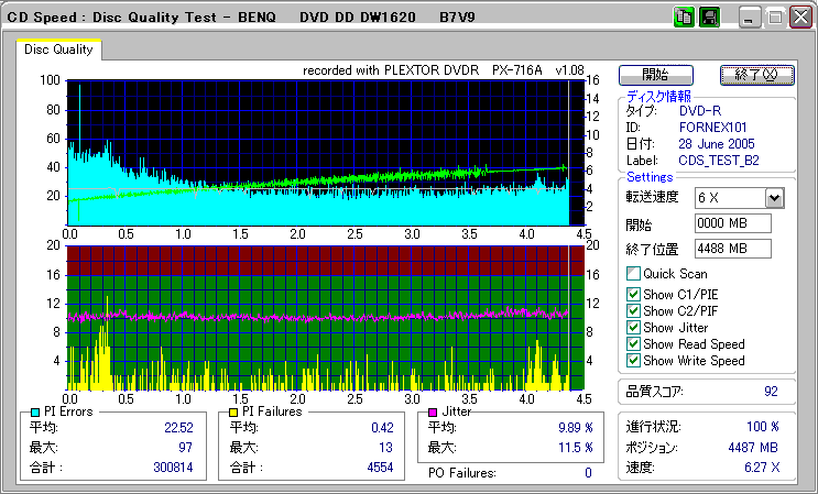 PlexTools Professional + PLEXTOR PX-716AのPI/PO 8ECC Sum Test(速度2 クリックで詳細表示) ![]() PlexTools Professional + PLEXTOR PX-716AのTA Test(クリックで詳細情報を表示) ![]() ![]() ![]() CDSpeed + BenQ DW1620Rの品質テスト(6x CAV PIE/PIF/Jitter/POF) ![]() DVDInfoPro + Pioneer DVR-108のPI/PO Test(PIE/POE) ![]() |