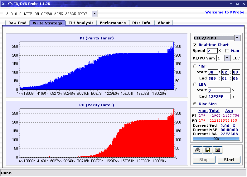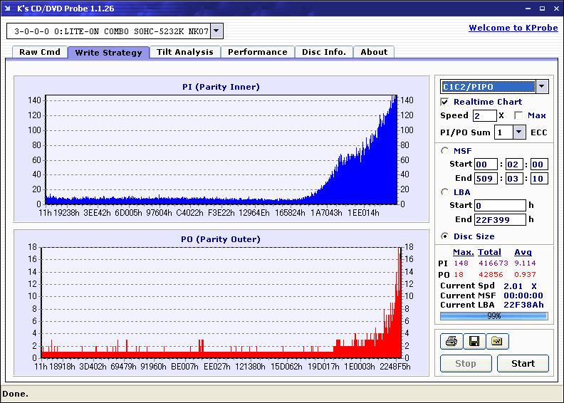 Fortis DVD-R 1-2x Manufacturer ID:"GSC001"GigaStorage OEM書込み時の倍速:-倍速 GigaStorage製の等倍速DVD-R。でも外周部がなんか明らかにハズレっぽい。妙に安かったし、値段相応かもしれない。リアルタイムグラフを見て最初は調子が良かったから、某板にて「いい感じ」などとのたまってしまったのだが……これはイカン。訂正しなければ。外周部がダメダメなものが多いようです。焼くのは2GBまでに抑えましょう。