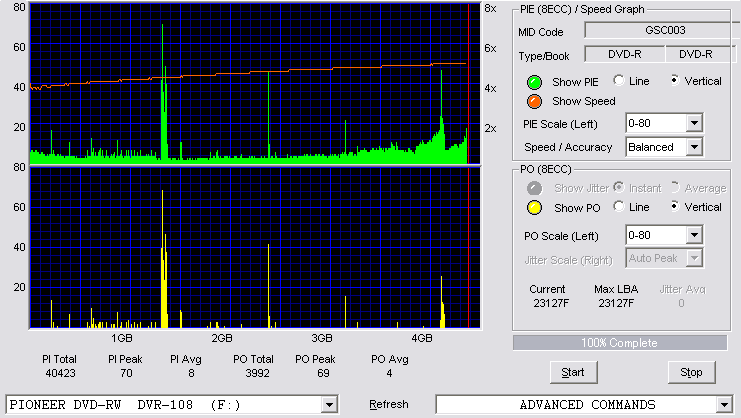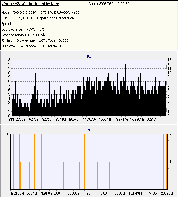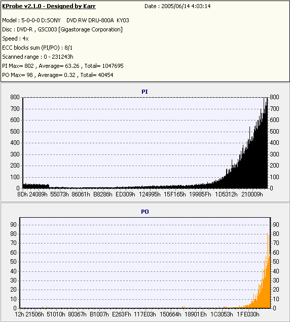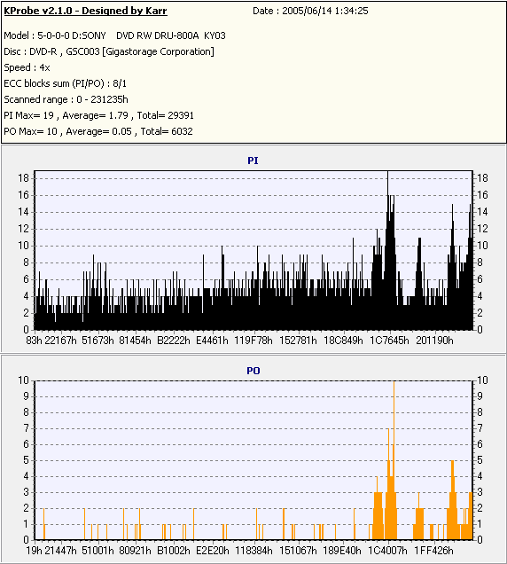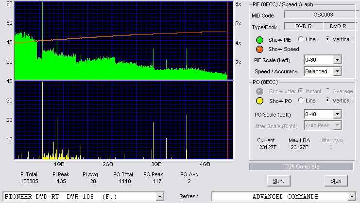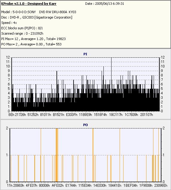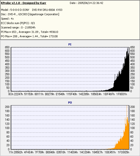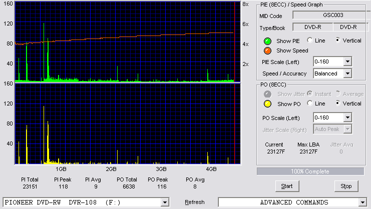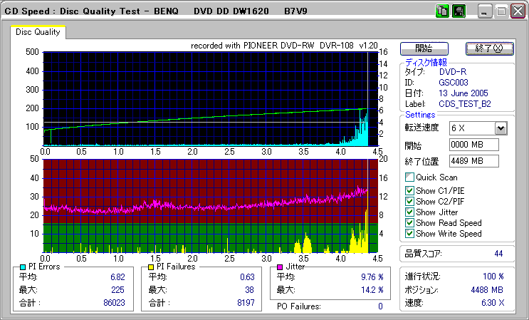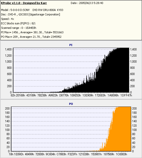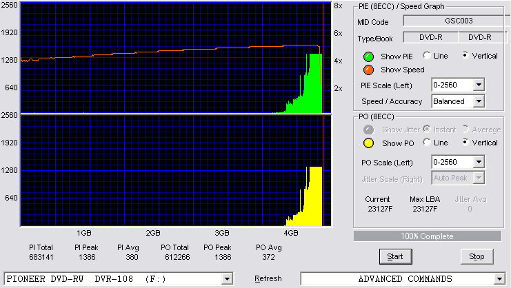 DVDInfoPro + Pioneer DVR-108のPI/PO Test(PIE/POE)