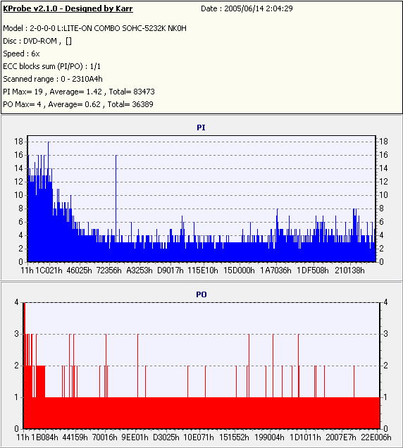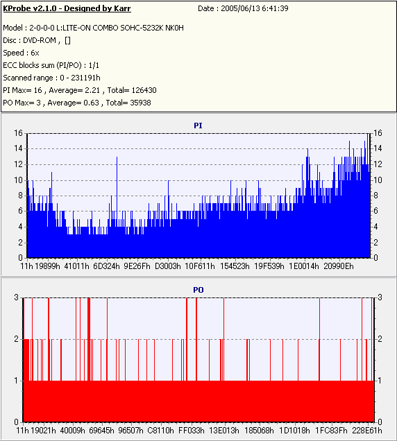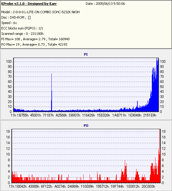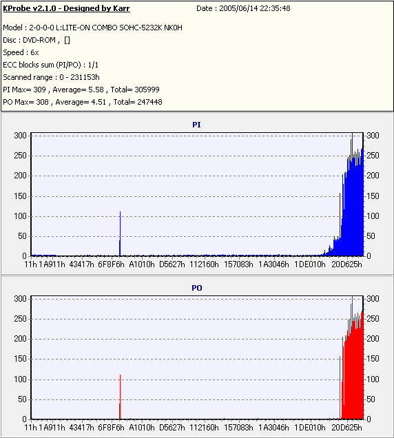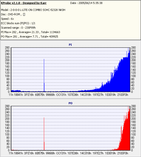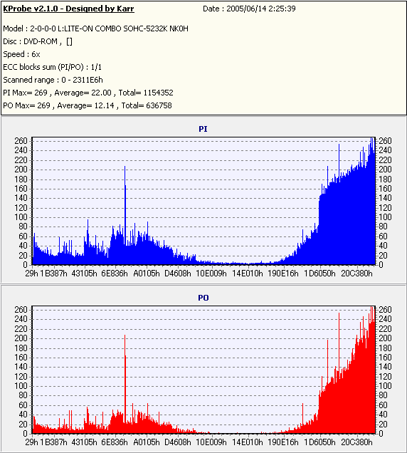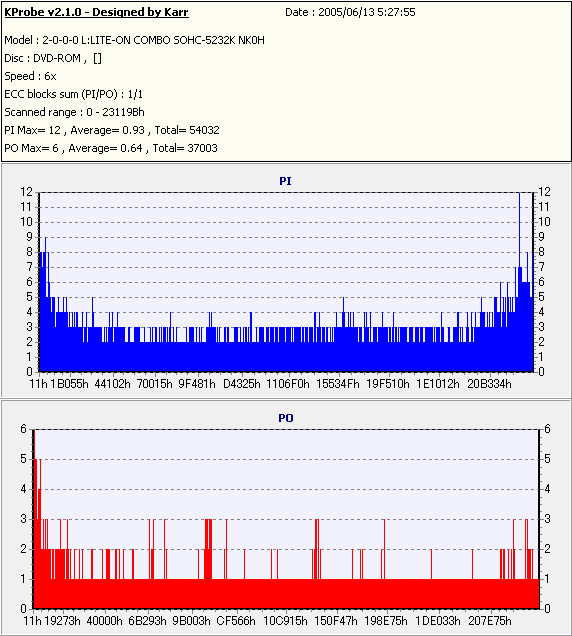 Kprobe + LITE-ON SOHC-5232Kでの1/1ECC Sum 6x CAV計測