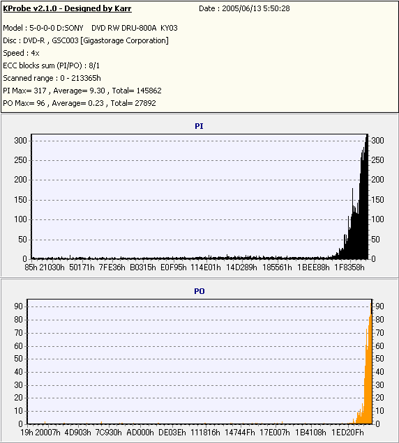 Kprobe + SONY DRU-800Aでの8/1ECC Sum 4x CLV計測