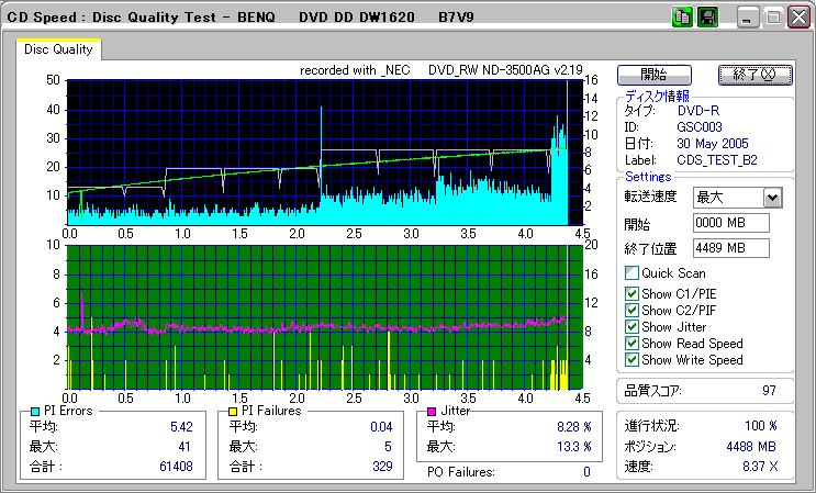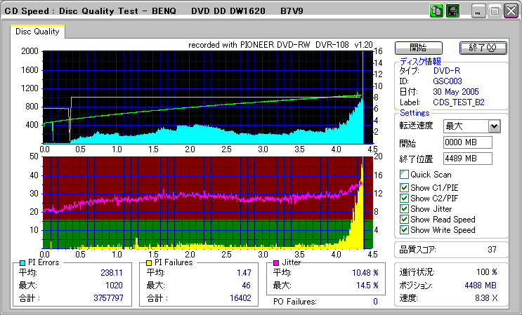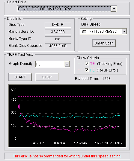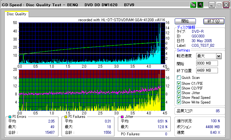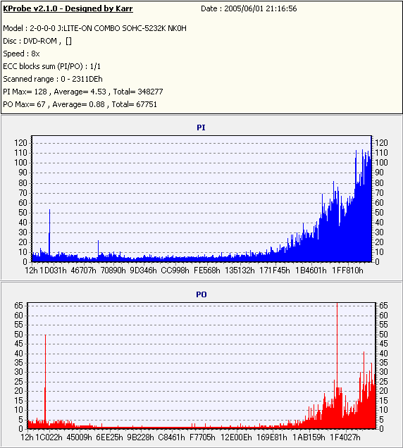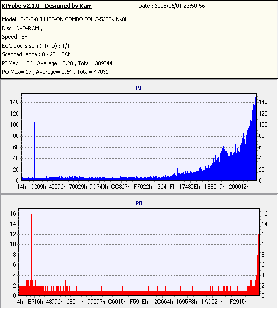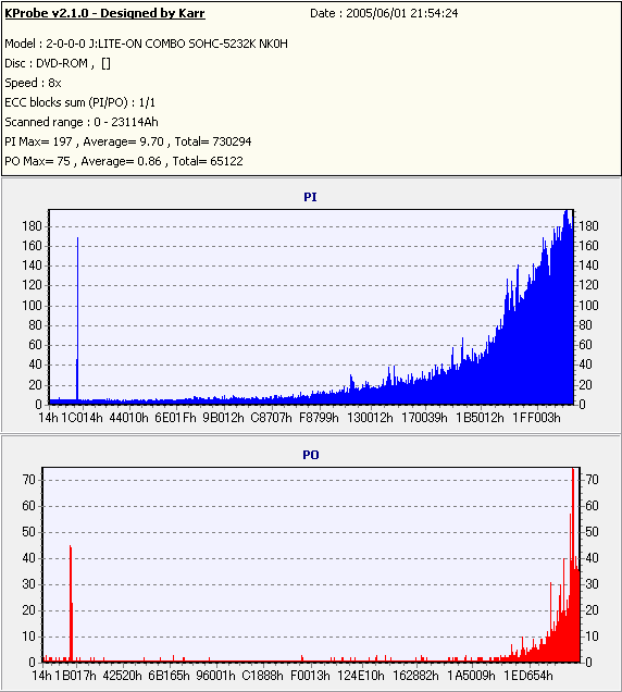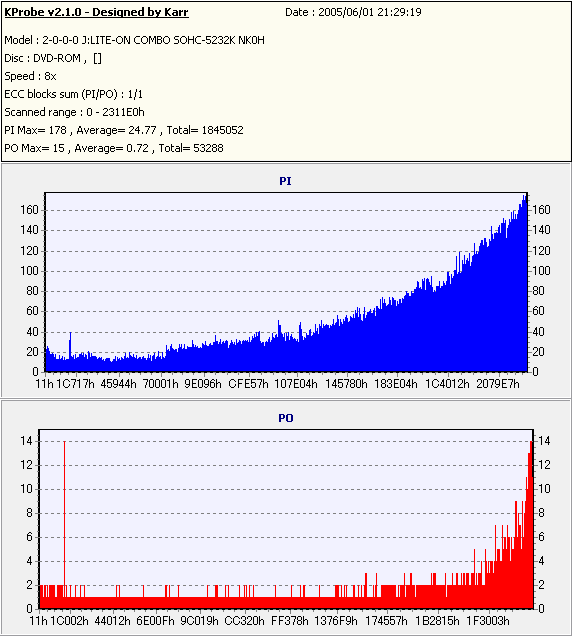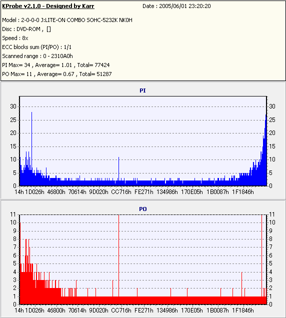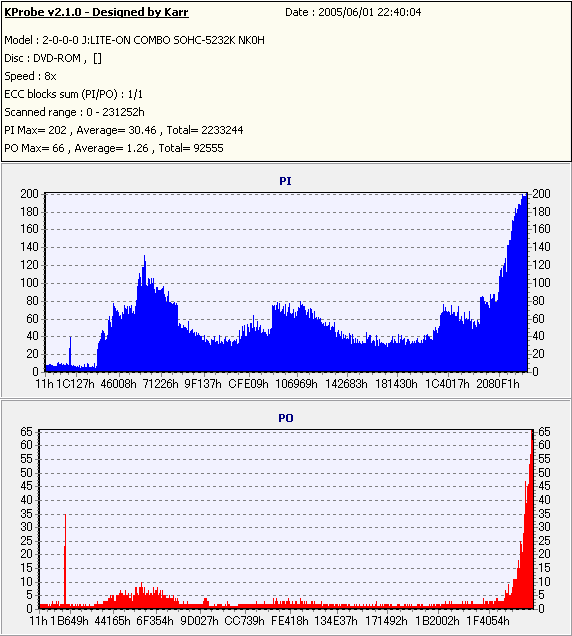 今回計測分はやはり外周が不安なのに加えて、更にドライブとの相性なのか、それとも個体差なのかよく判らないばらつきが発生している。当たりらしきものはそんなに悪くない結果なのだが…… |