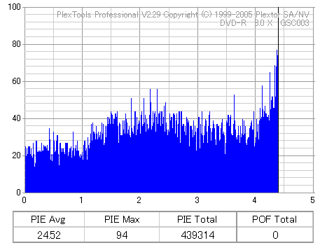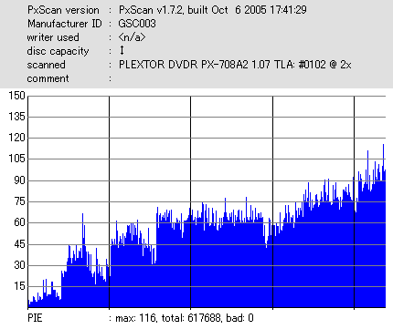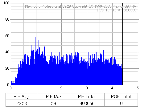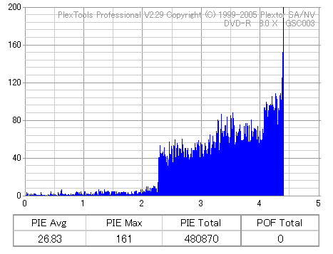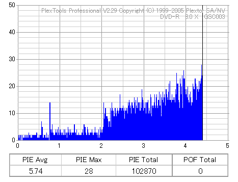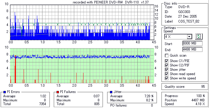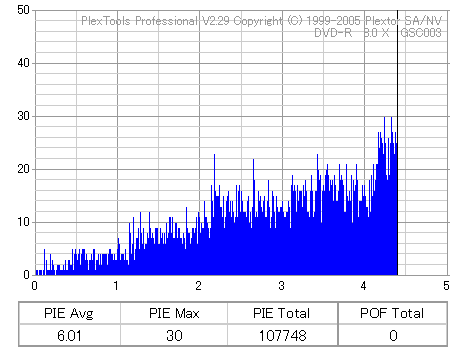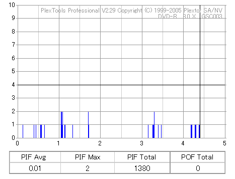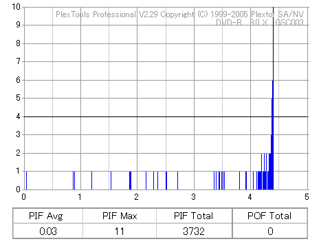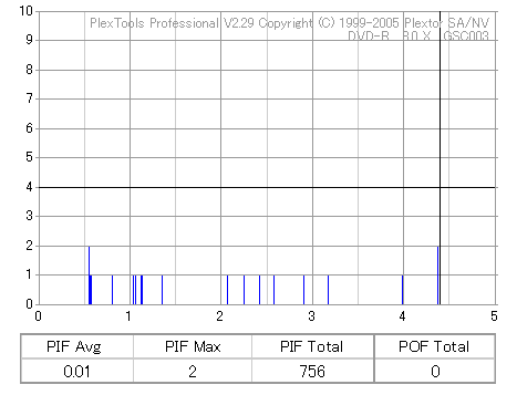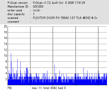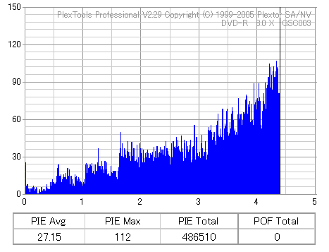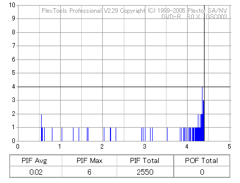 8倍速焼きでも十分な品質を発揮しています。但し、当サイトで使用しているDVR-110はかなりの当たり個体なので、全ての110で同じ結果になるとは限りません。