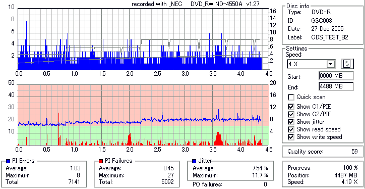 CDSpeed with BenQ DW1640_Disc Quality Test -DW1640でのディスク品質チェック- |