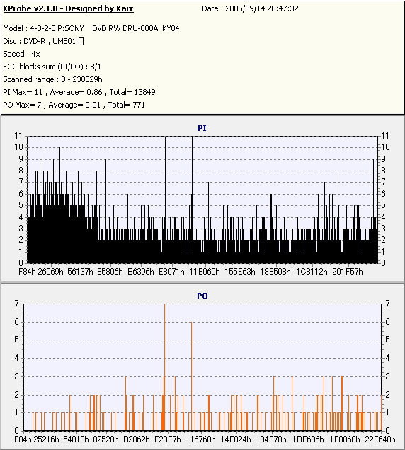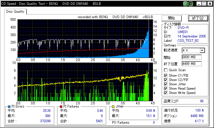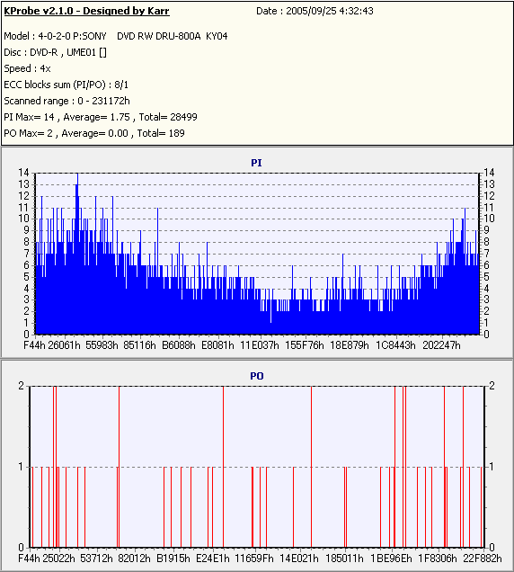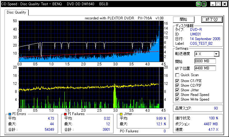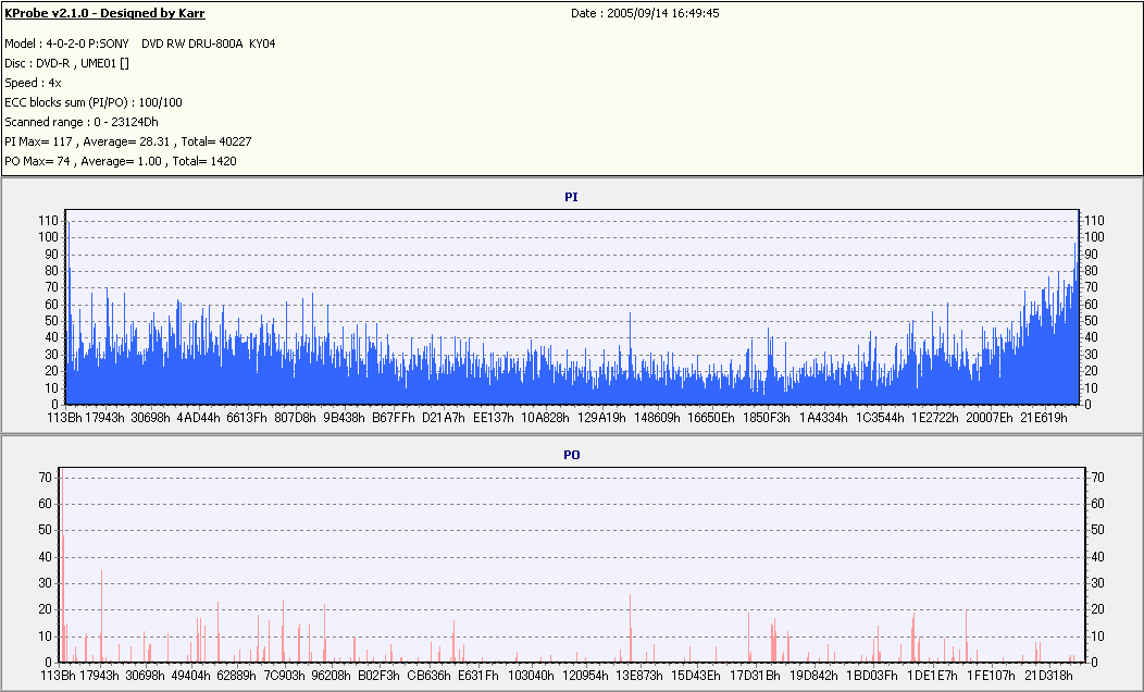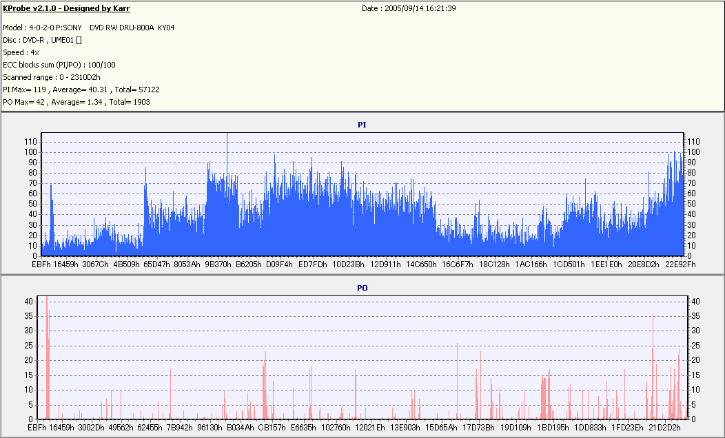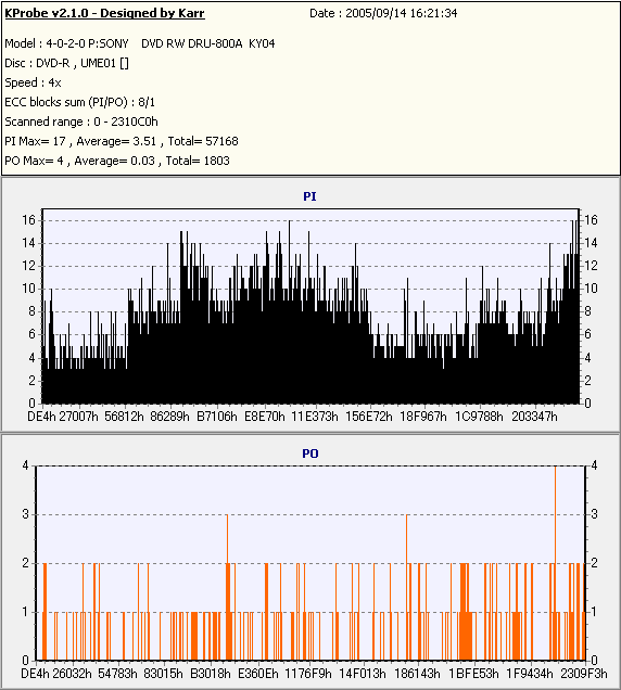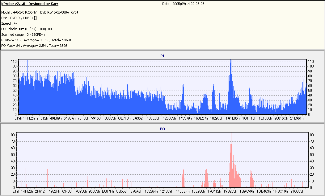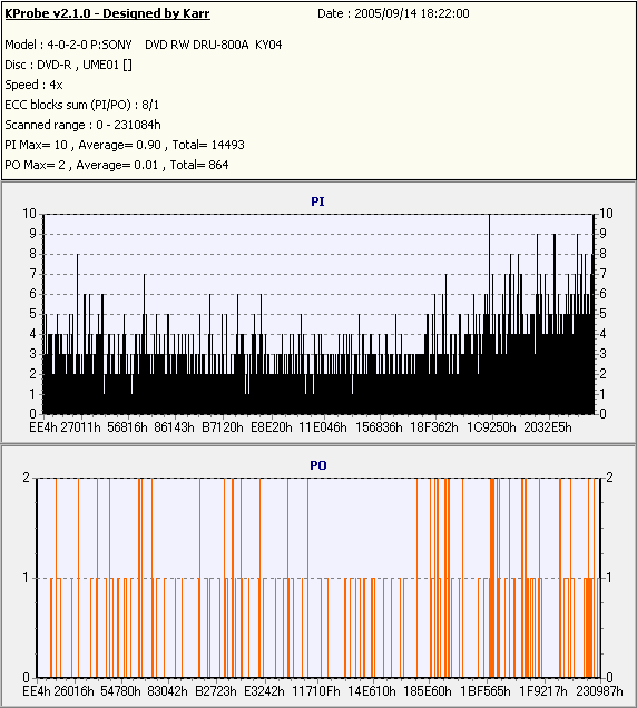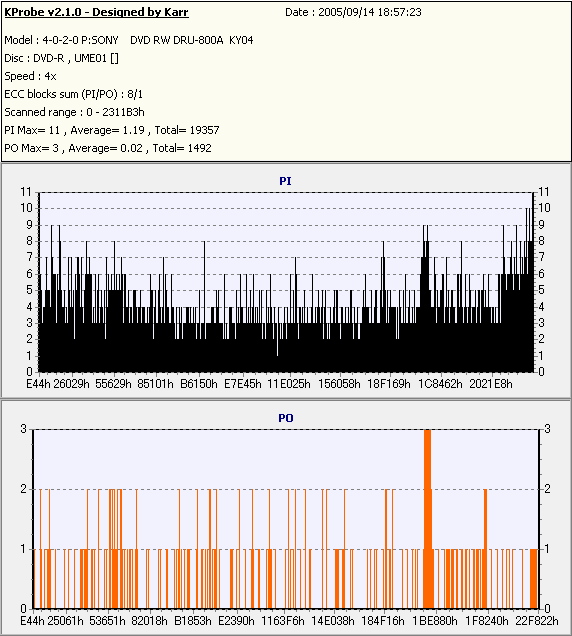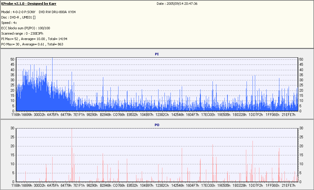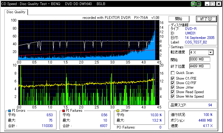 何か変なのでもう一度。すると今度はかなりきれいに焼けました。 多分前のディスクはキズでも付いてたんでしょう。 しかしこういうのがパッケージ内に入ってるってことが事実としてあるわけで、 即ちそれも品質でありこちらは総合評価外とします。 |