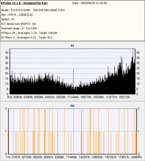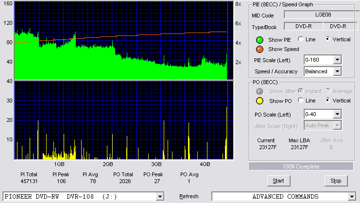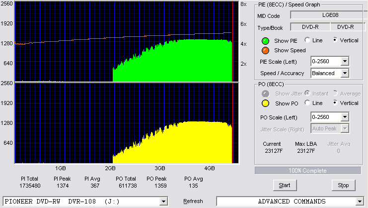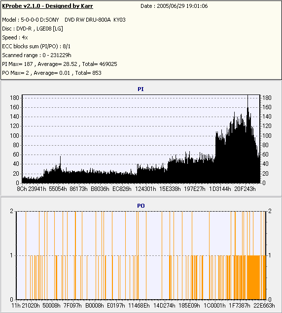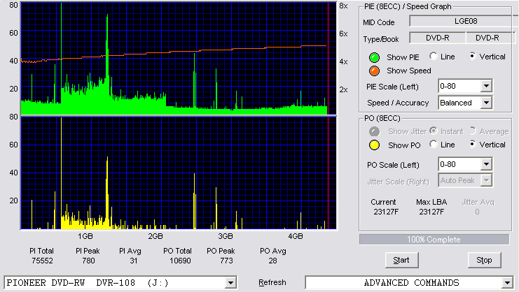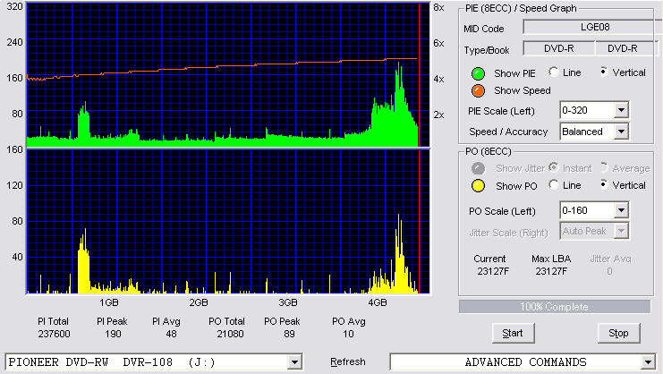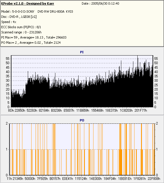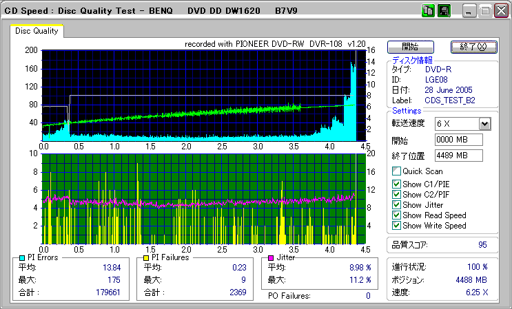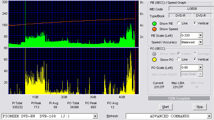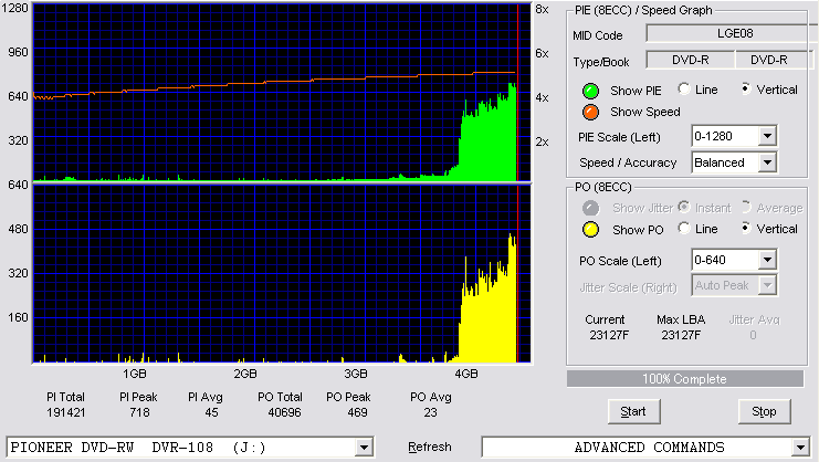 DVDInfoPro + Pioneer DVR-108のPI/PO Test(PIE/POE)
