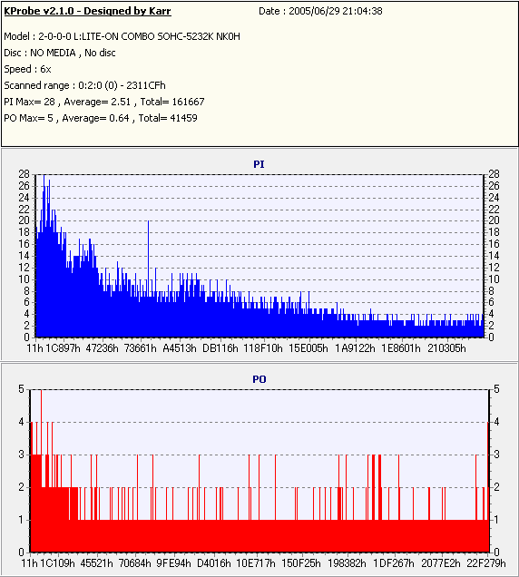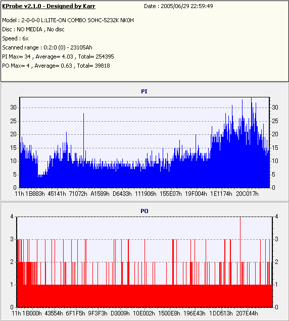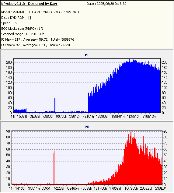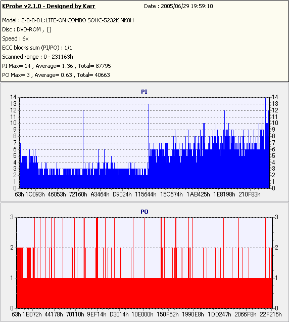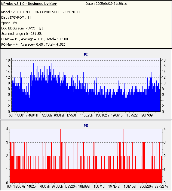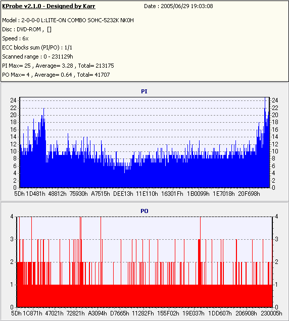 Kprobe + LITE-ON SOHC-5232Kでの1/1ECC Sum 6x CAV計測