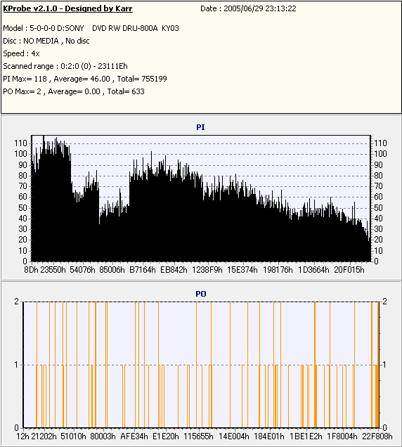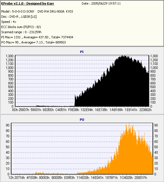 Kprobe + SONY DRU-800Aでの8/1ECC Sum 4x CLV計測
