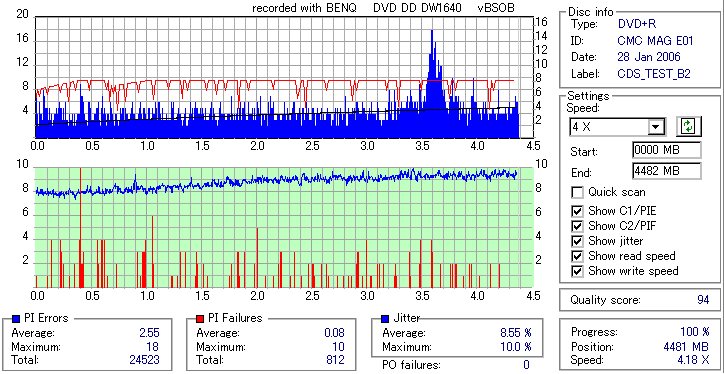 CDSpeed with BenQ DW1640_Disc Quality Test -DW1640でのディスク品質チェック- |