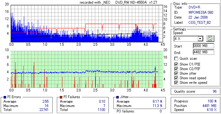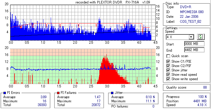 ヨーロッパのメディアの中でも品質的に特に抜けており、IDに対応しているドライブであればどれも素晴らしい結果になっています。 惜しむらくはそのIDの普及がいまいちなので、対応していないドライブが多いこと。LGやTEACの非対応は痛いです。 ともあれ、もの自体は非常に良いものですので、もし何かのはずみで手に入ったら大事に使ってやりましょう。 |