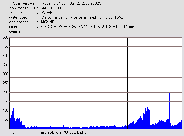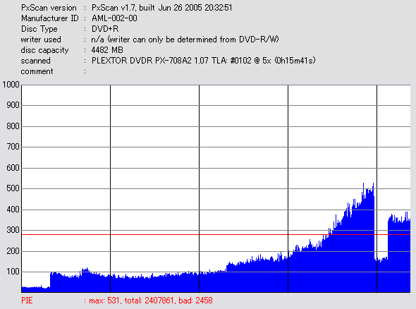PXscan + PLEXTOR PX-708A2の8ECC Sum 5x CAV計測 |