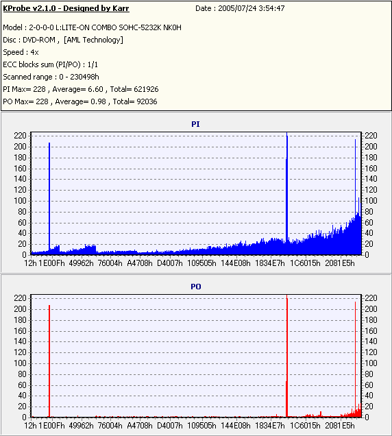 Kprobe + LITE-ON SOHC-5232Kでの1/1ECC Sum 4x CAV計測 |