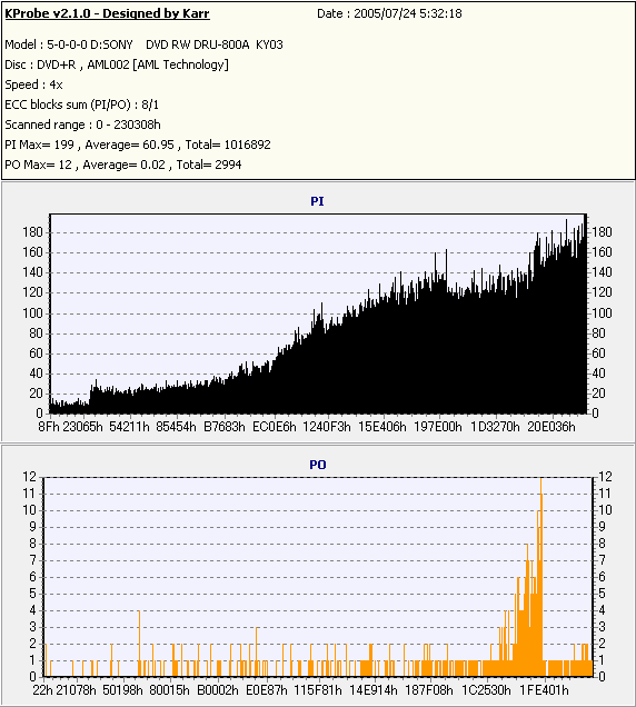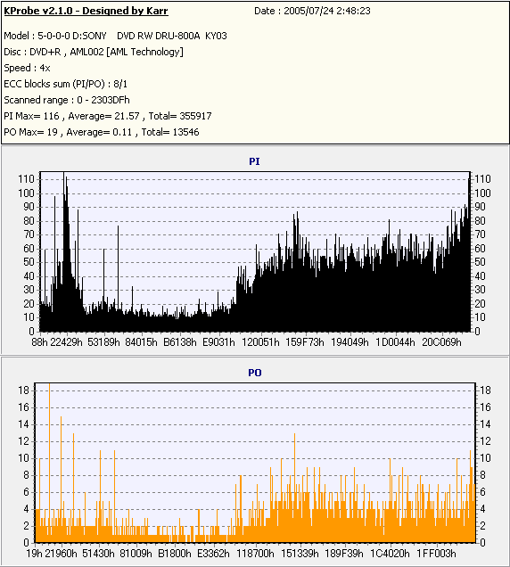 Kprobe + SONY DRU-800Aでの8/1ECC Sum 4x CLV計測 |