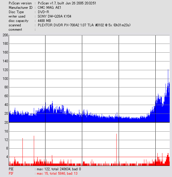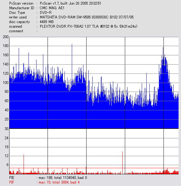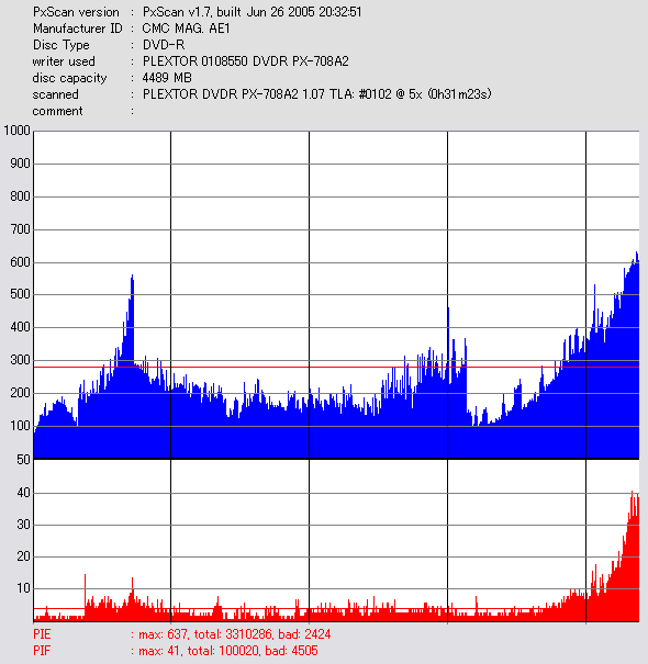 PLEXTOR PX-708A2(PX-712A OEM) ... PXScan PI/PO 8ECC Sum Test (5x CAV) |