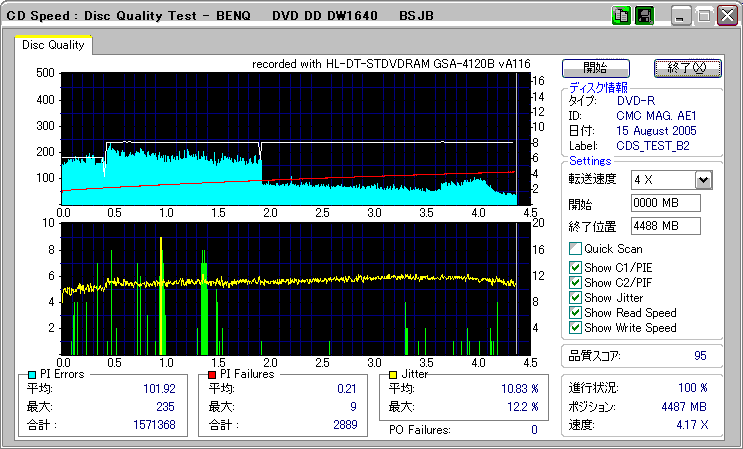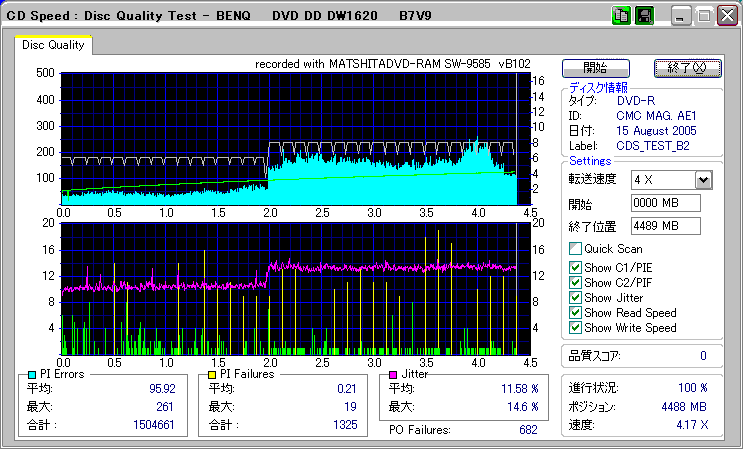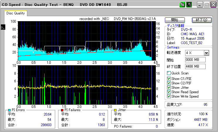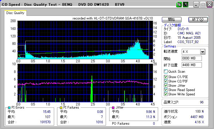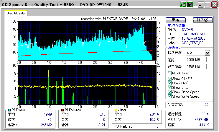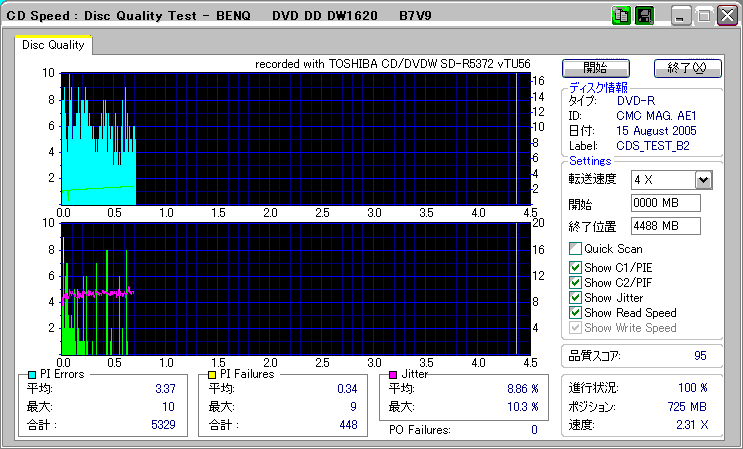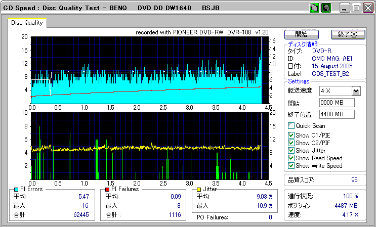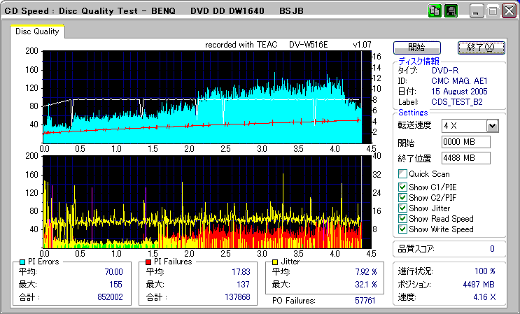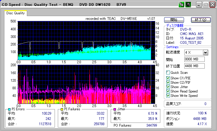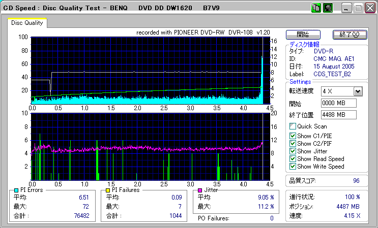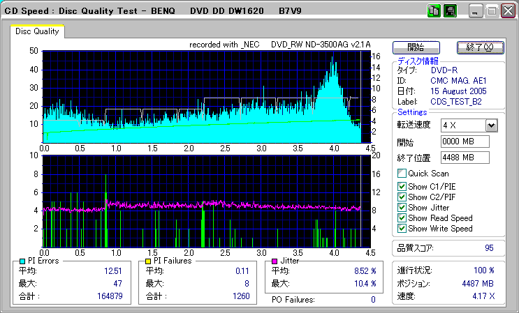 どうも品質的に微妙そうで、ドライブによっては規格値をオーバーするかしないかといったところなので、なるべくならND-3500AやPX-716A等のドライブで焼きにいった方が良さそう。どうにもこの価格で買うのはちょっと勿体無い気がする。せめて4倍で焼いた方が良い。 |