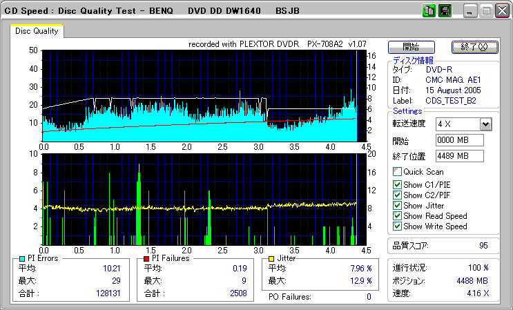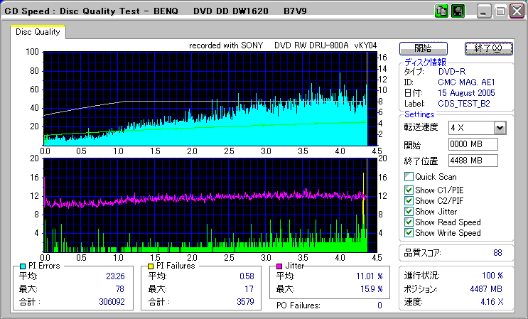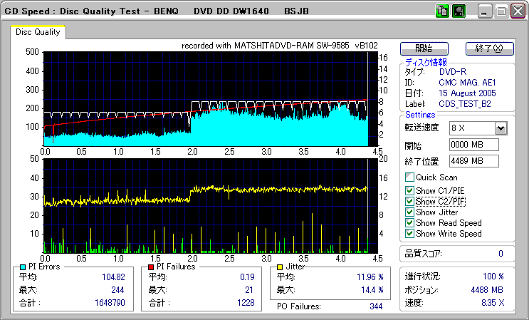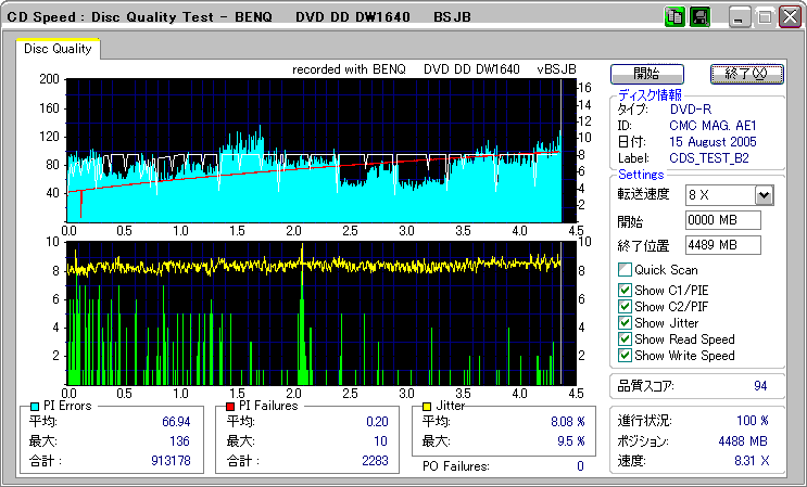 BenQ DW1640_... CDSpeed Disc quality test (8/4ECC Sum 4xCAV) |