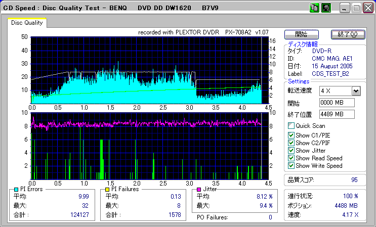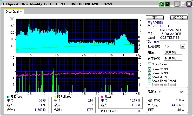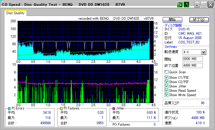 BenQ DW1620R_... CDSpeed Disc quality test (8/4ECC Sum 4xCAV) |