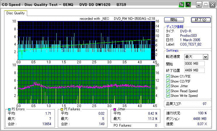 ND-3500AやDVR-108等の高品質ドライブ層では綺麗に焼けている。 |