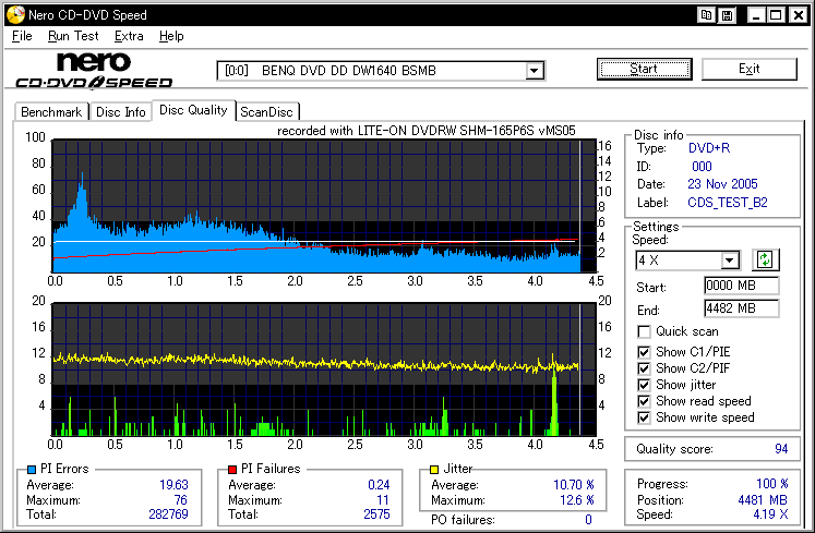 CDSpeed with BenQ DW1640_Disc Quality Test -DW1640でのディスク品質チェック- |