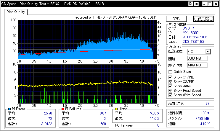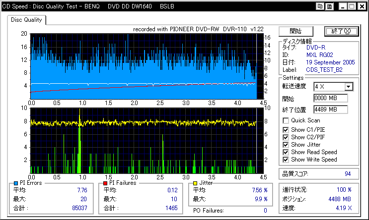 ちょっと外周の方が若干怪しい感じ。LG系ドライブでは焼かない方が良いかもしれません。 |
