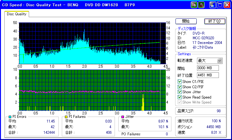 焼き直後の読み出し品質