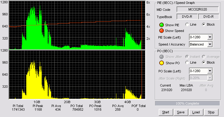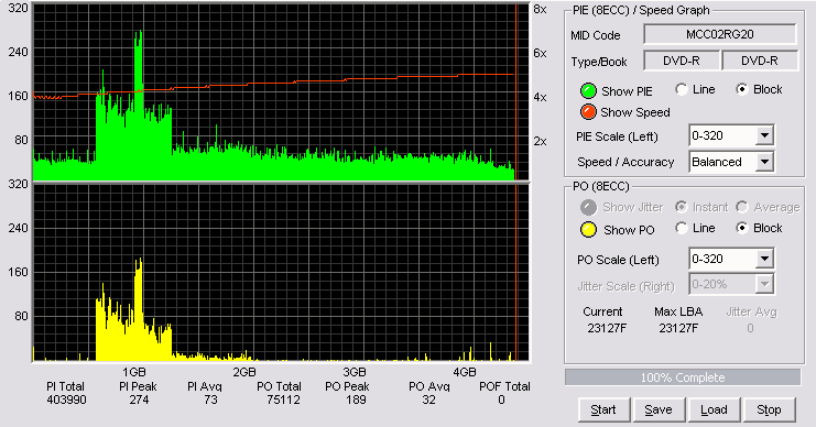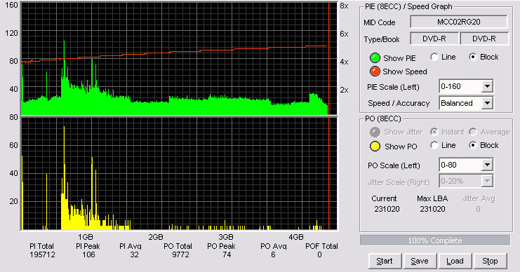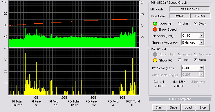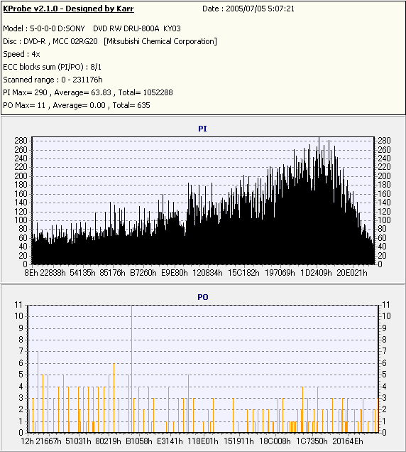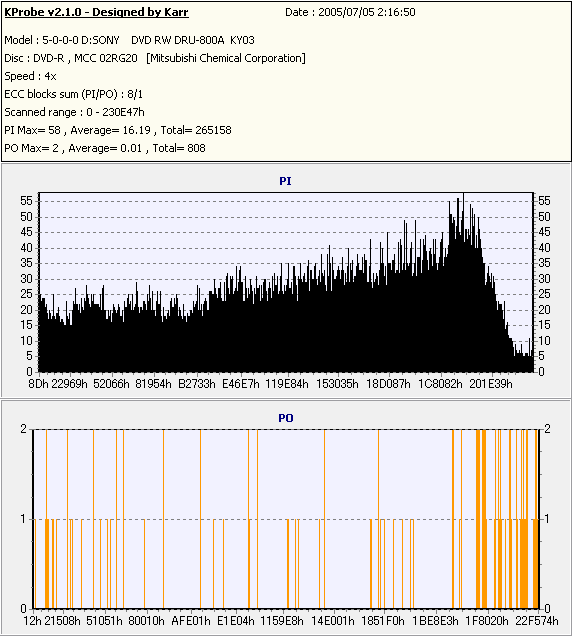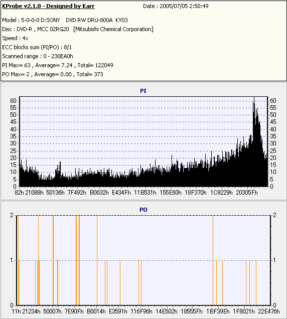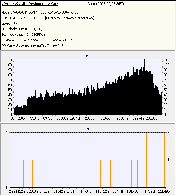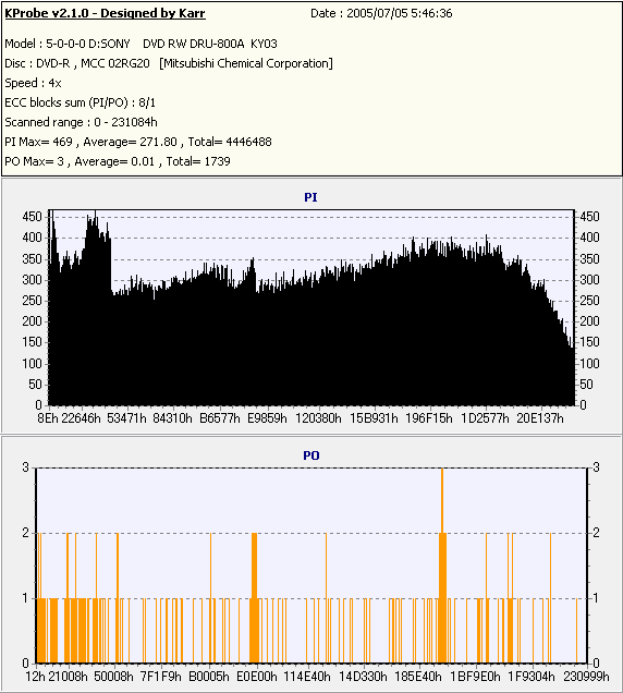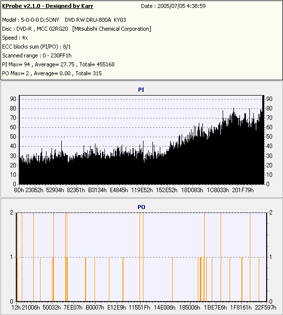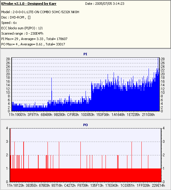 DVDInfoPro + Pioneer DVR-108のPI/PO Test(PIE/POE)