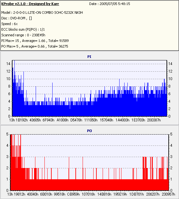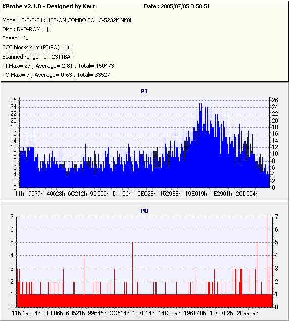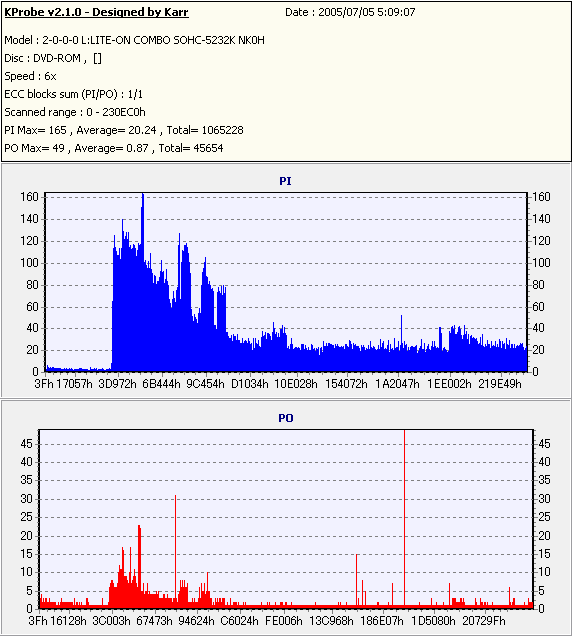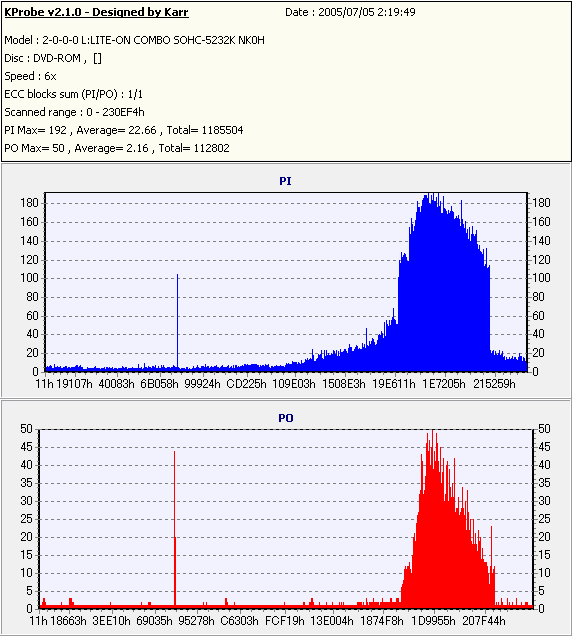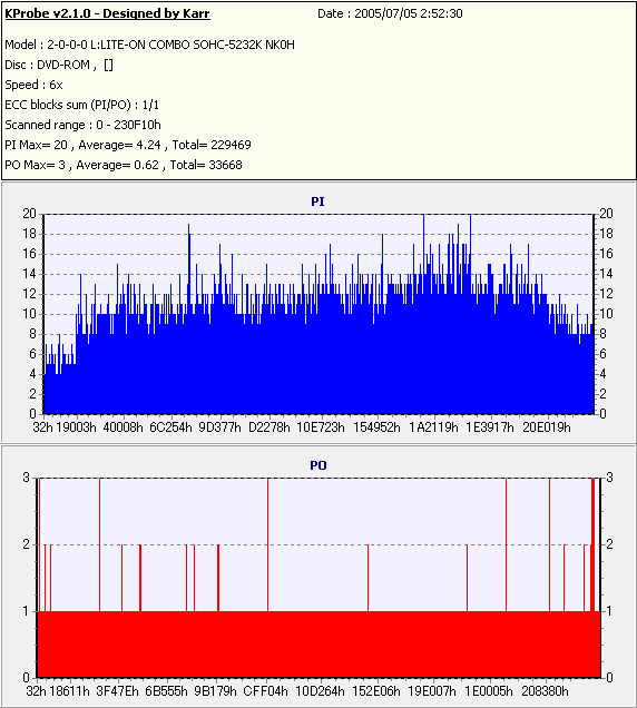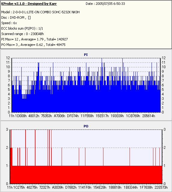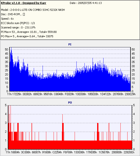 Kprobe + LITE-ON SOHC-5232Kでの1/1ECC Sum 6x CAV計測