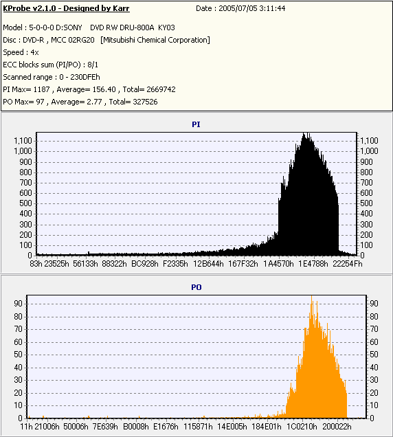 Kprobe + SONY DRU-800Aでの8/1ECC Sum 4x CLV計測