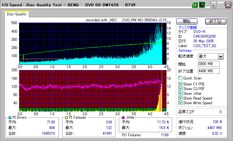 内周の高エラーが響いているのか、DW1620R及びDVR-108でマウント不能。 |