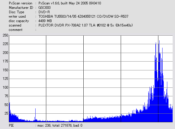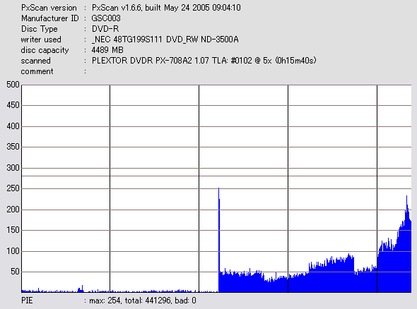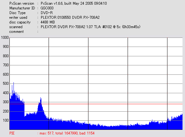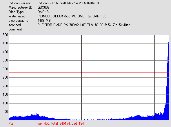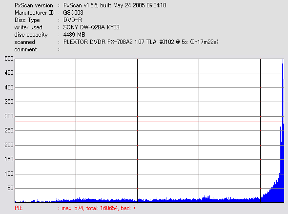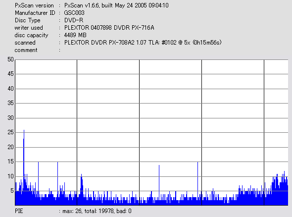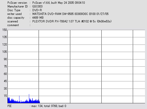 PXScan + PLEXTOR PX-708A2のPI/PO 8ECC Sum Test(5x CAV) |