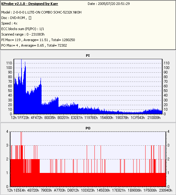 Kprobe + LITE-ON SOHC-5232Kでの1/1ECC Sum 4x CAV計測 |