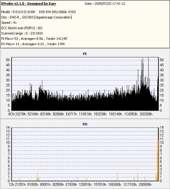 Kprobe + SONY DRU-800Aでの8/1ECC Sum 4x CLV計測 |