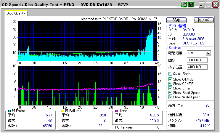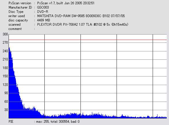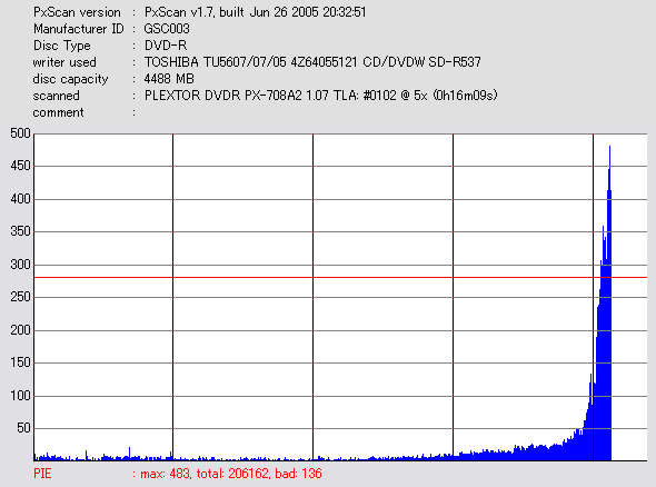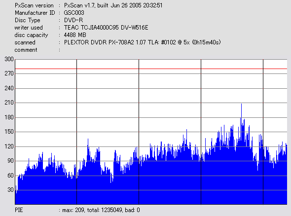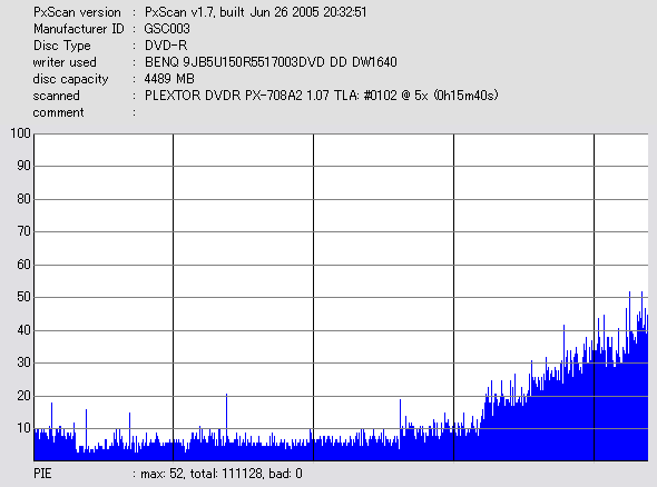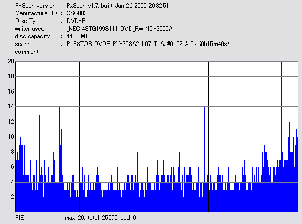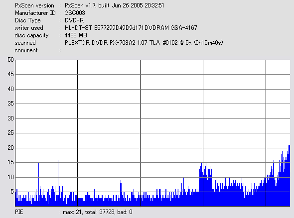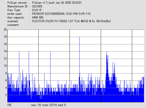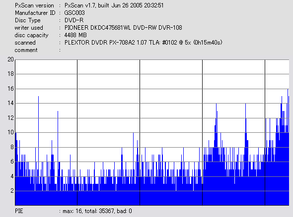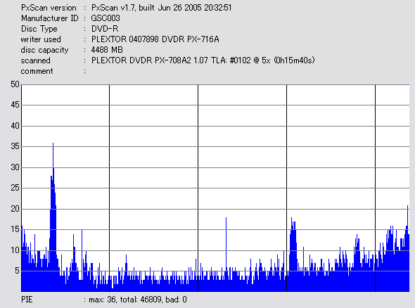 PXscan + PLEXTOR PX-708A2の8ECC Sum 5x CAV計測 |