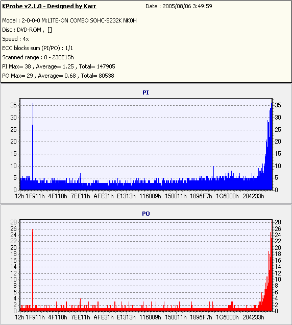 Kprobe + LITE-ON SOHC-5232Kでの1/1ECC Sum 4x CAV計測 |