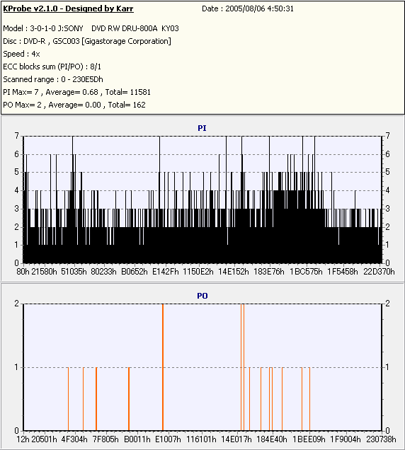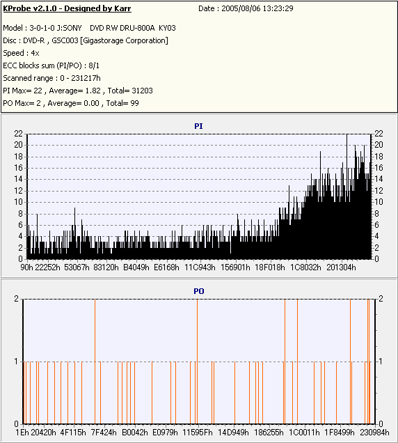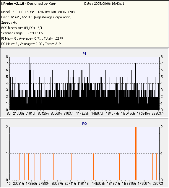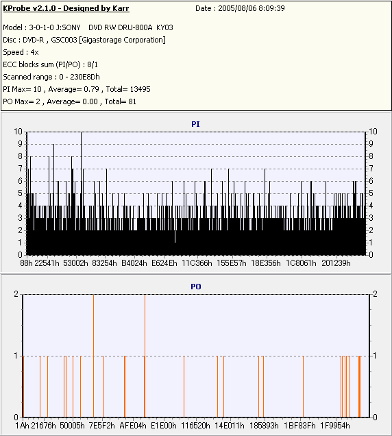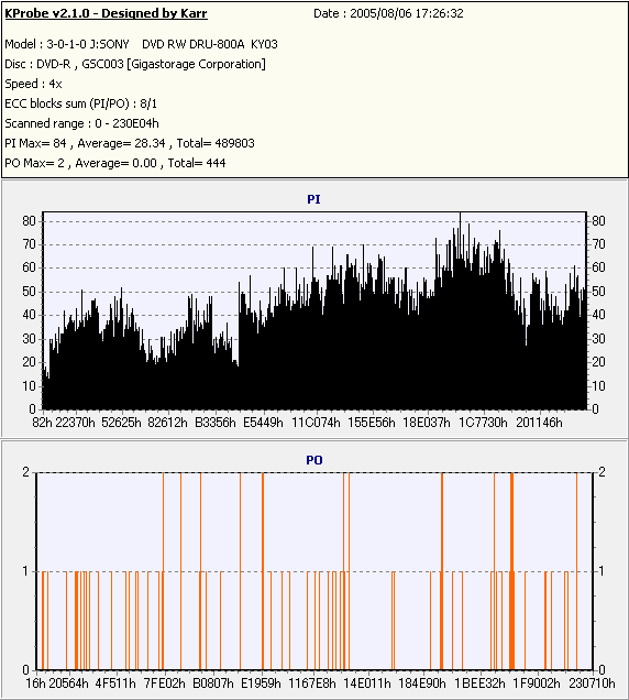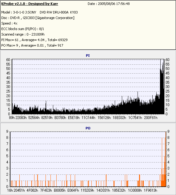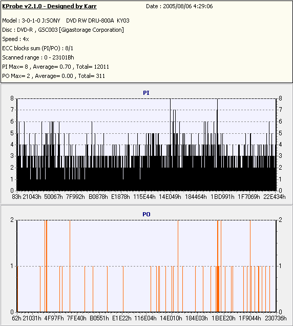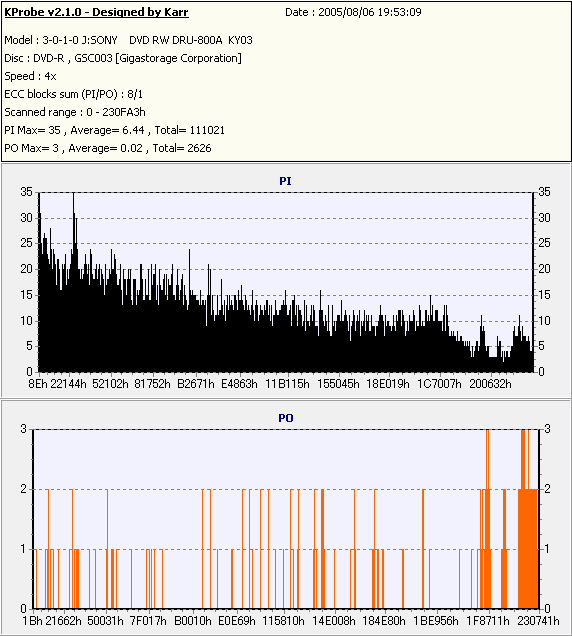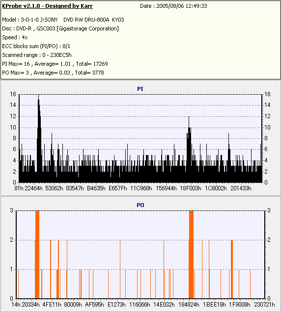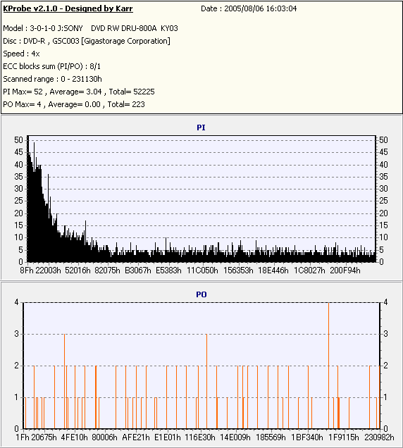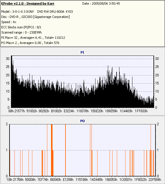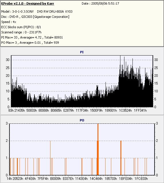 Kprobe + SONY DRU-800Aでの8/1ECC Sum 4x CLV計測 |