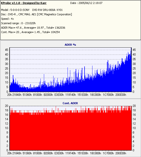Kprobe + SONY DRU-800Aでの8/1ECC Sum 4x CLV計測