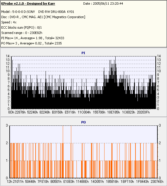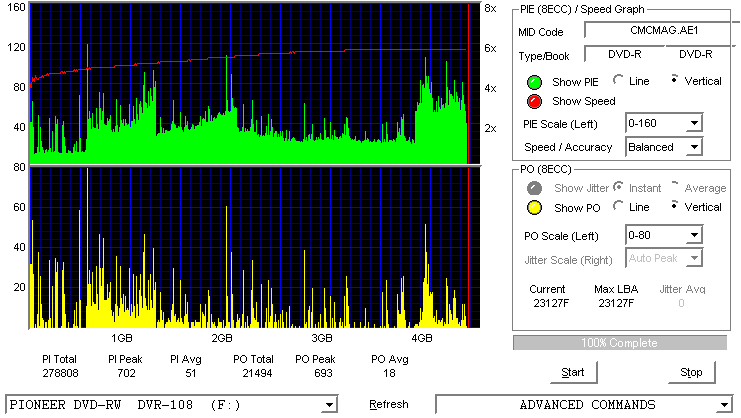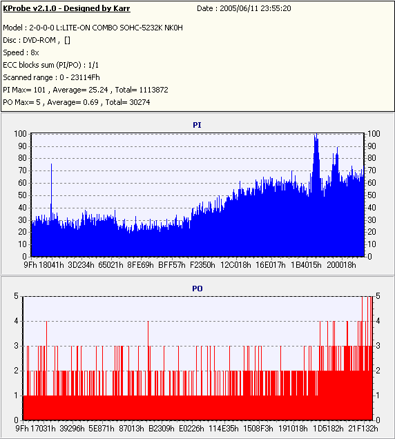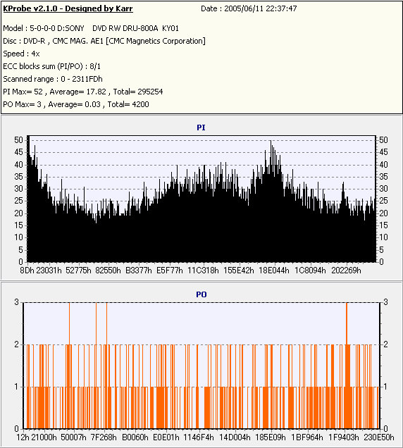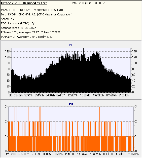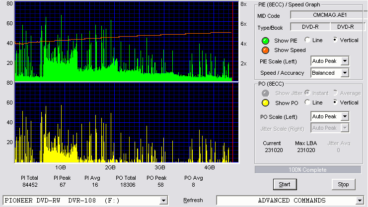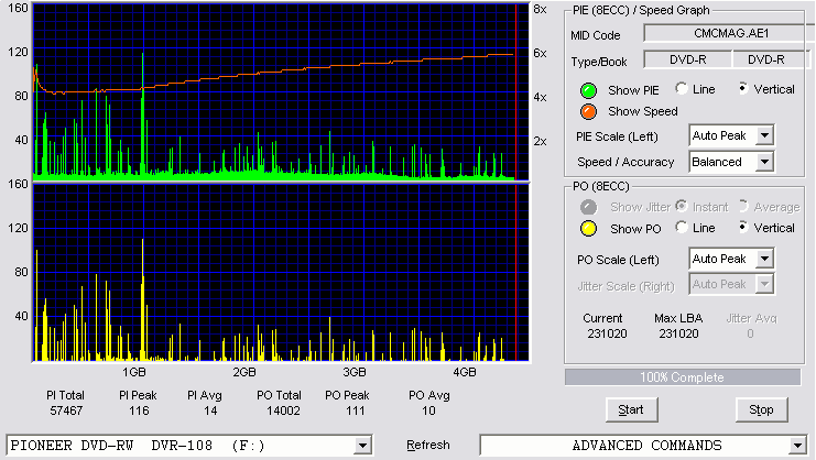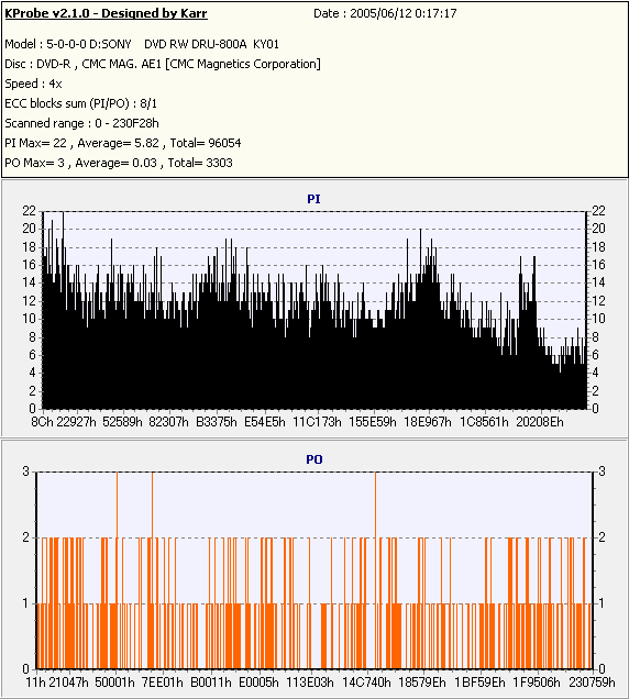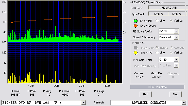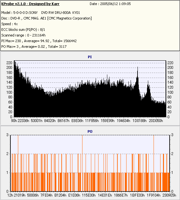 DVDInfoPro + Pioneer DVR-108のPI/PO Test(PIE/POE)
