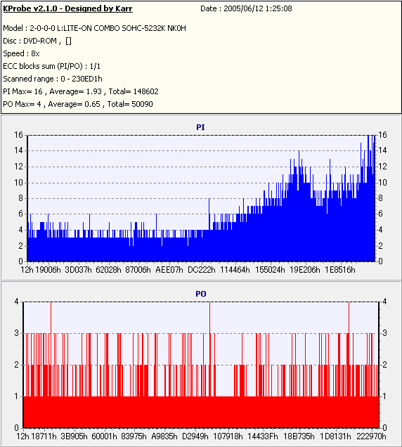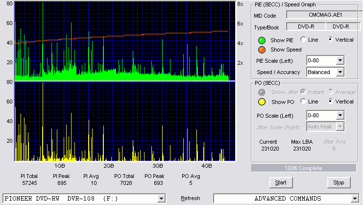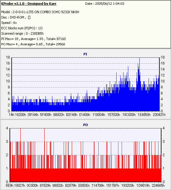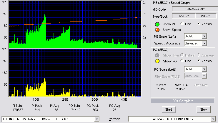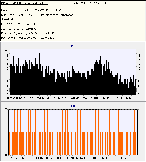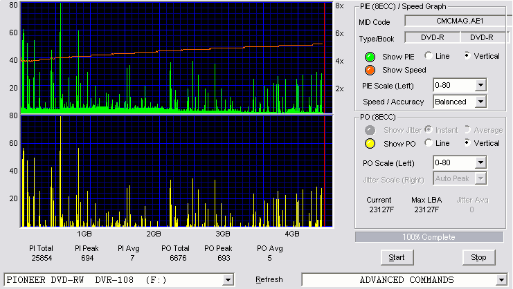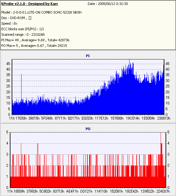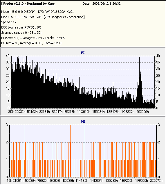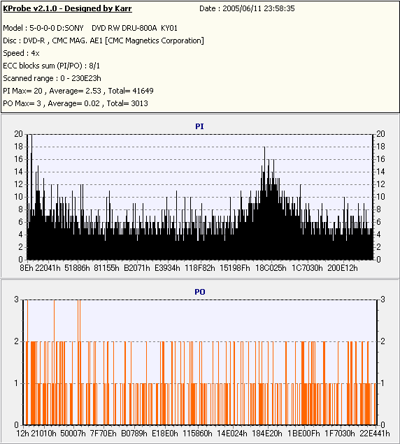 DVDInfoPro + Pioneer DVR-108のPI/PO Test(PIE/POE)