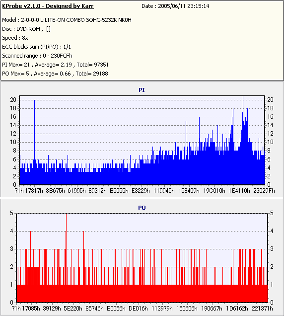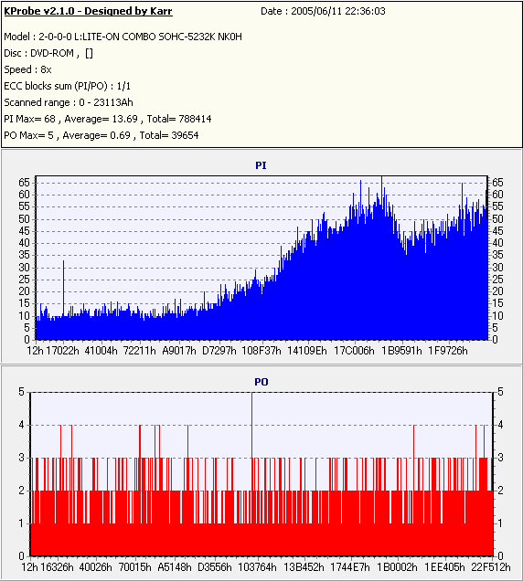 PlexTools Professional + PLEXTOR PX-716AのPI/PO 8ECC Sum Test(速度2 クリックで詳細表示)