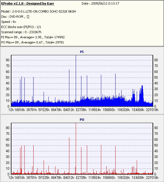 Kprobe + LITE-ON SOHC-5232Kでの1/1ECC Sum 8x CAV計測