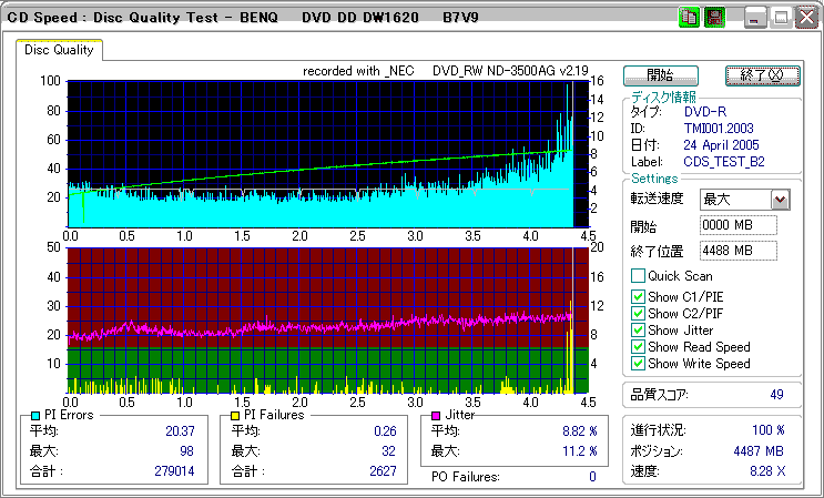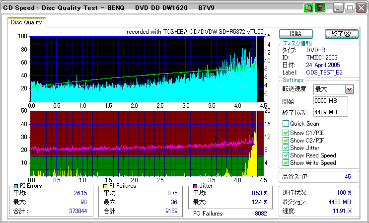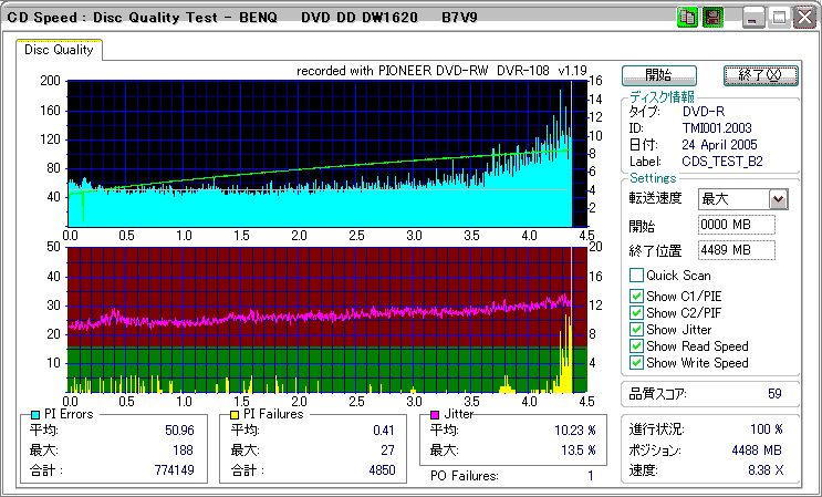品質的には若干外周が怪しい感じだが、内周の方は良好。 |